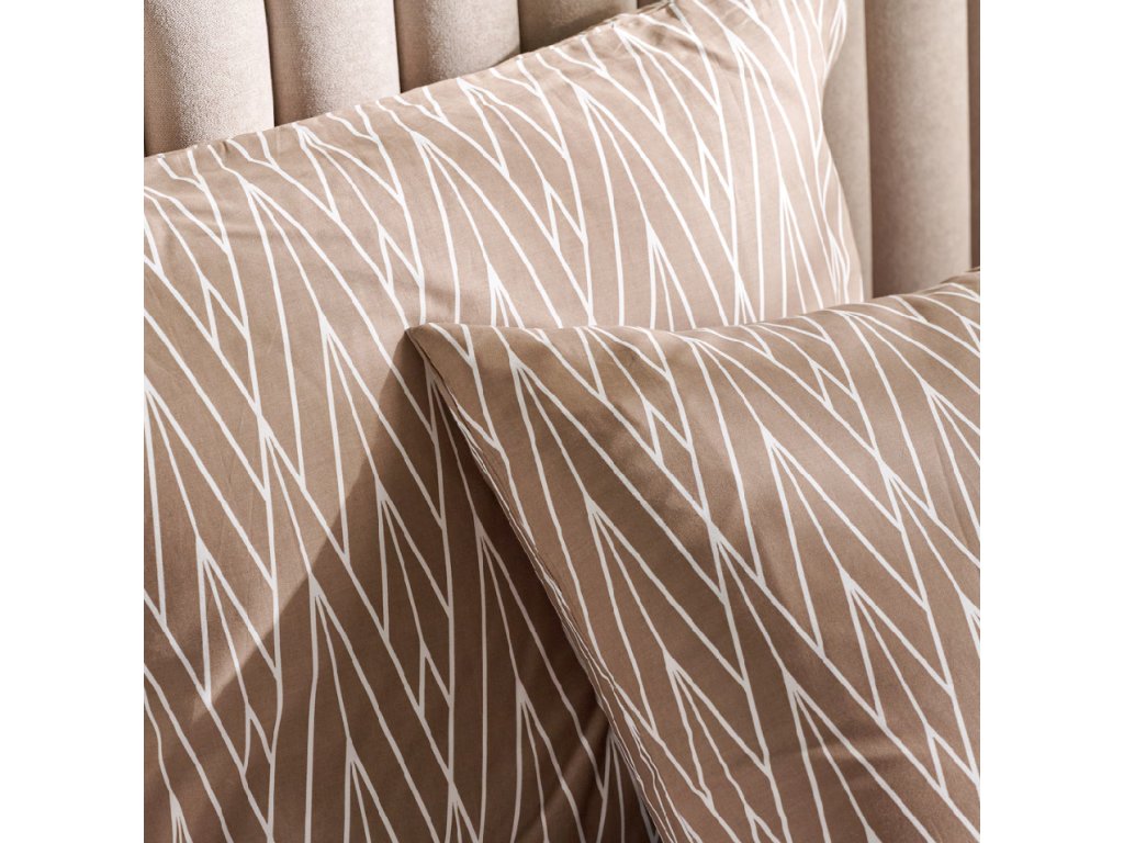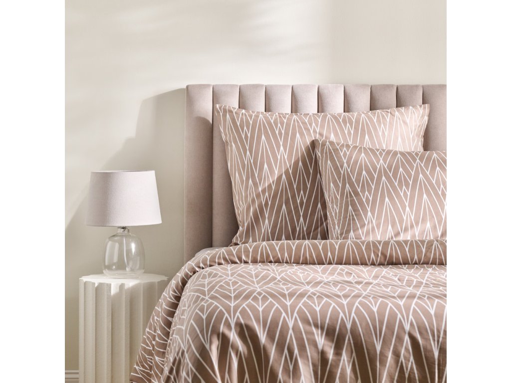 Béžová farba spojená s bielym geometrickým vzorom pripomínajúcim elegantné listy robí tieto obliečky univerzálnym návrhom do moderných a klasických interiérov. Rafinovaný motív podčiarkne charakter minimalistickej, škandinávskej alebo romantickej spálne. Obliečky Zinella sa osvedčia aj ako praktický a štýlový darček pre blízkych.
