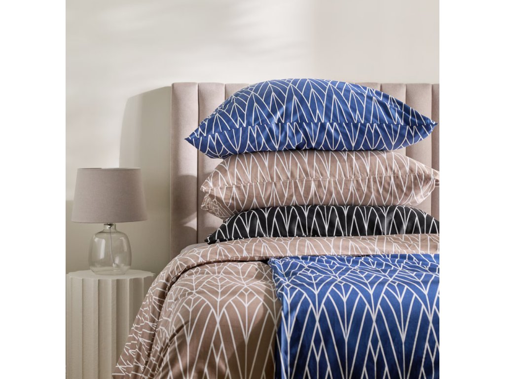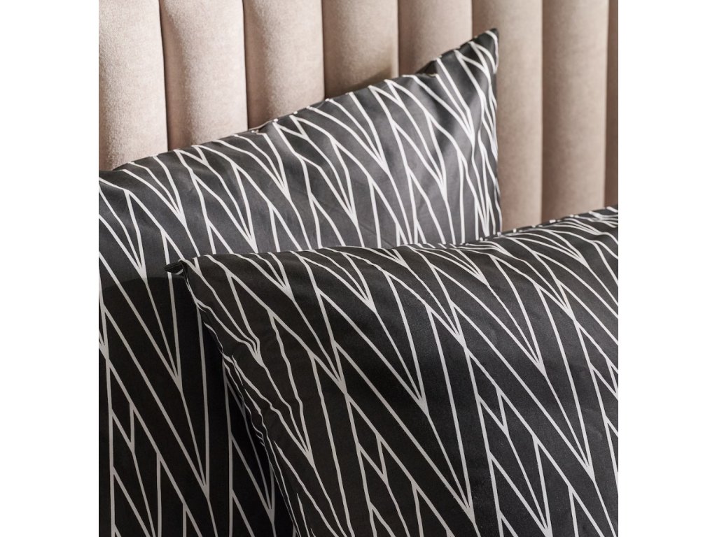 Čierny podklad obohatený geometrickým, bielym vzorom vnáša do spálne modernú eleganciu. Pravidelnosť a harmónia línií spôsobujú, že Zinella skvele ladí s minimalistickými, loftovými, ako aj klasickými aranžmánmi. Jednoduchý, a zároveň dizajnový motív robí obliečky ideálnymi nielen pre každodennú výzdobu, ale aj ako nápad na funkčný darček.