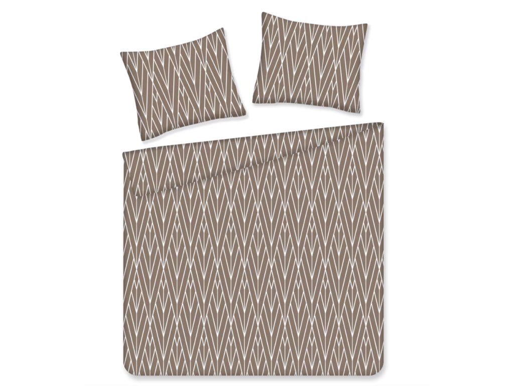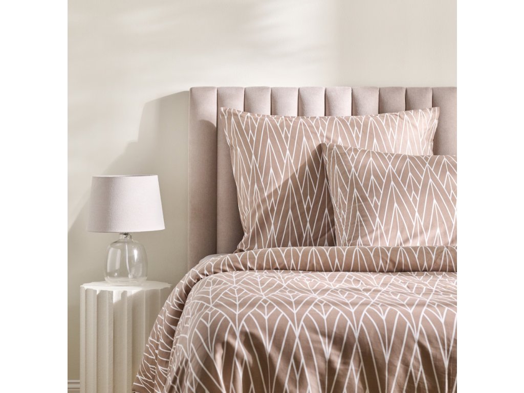 Béžové obliečky Zinella, obohatené o geometrický vzor v podobe jemných bielych línií pripomínajúcich listy, vnášajú do spálne moderný a harmonický akcent. Subtílna farebnosť a efektný motív sa osvedčia v minimalistických aj elegantných aranžmánoch. Starostlivo šité detaily a identická predná a zadná strana dodávajú štýl a úhľadnosť. Súprava je odporúčaná aj ako vkusný darček pre blízku osobu na každú príležitosť.