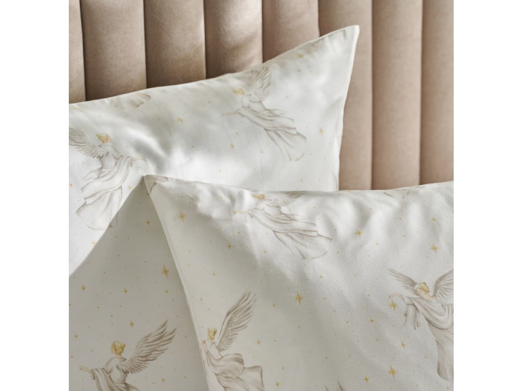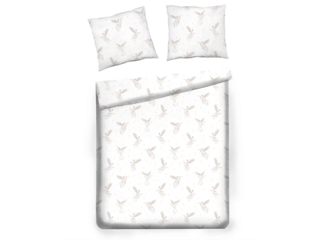 Biela farba v kombinácii s jemným vzorom anjelov a zlatých hviezdičiek vytvára efekt pokojnej, tlmenej elegancie. Obliečky Angeliso sa dokonale hodia do svetlých, klasických a moderných interiérov, najmä tých inšpirovaných škandinávskym štýlom. Vďaka univerzálnej estetike a elegantnému baleniu môžu byť tiež vynikajúcim nápadom na darček.