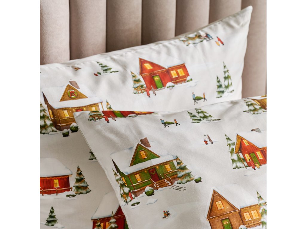 Jemný, béžový odtieň podkladu s farebným zimným motívom domčekov a vianočných stromčekov vytvára útulnú, rozprávkovú atmosféru v spálni. Detailný vzor inšpirovaný zimnou krajinou sa skvele hodí do sviatočných aranžmánov, ako aj do interiérov v škandinávskom a klasickom štýle. Balenie s elegantnou stuhou robí z obliečok Winhurst dokonalý darček pre blízku osobu.