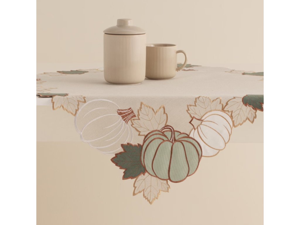 Obrus s tekvicovým vzorom, vyrobený z polyesteru s prímesou viskózy, je elegantný a funkčný doplnok na každý stôl. Jeho teplá, svetlá farba vnesie do interiéru nádych sviežosti a útulnosti, pričom sa dokonale hodí k jesenným dekoráciám a rôznym štýlom aranžmánov. Obrus spája odolnosť polyesteru s jemnosťou a hebkosťou viskózy, vďaka čomu je nielen estetický, ale aj odolný voči opotrebovaniu a ľahko sa udržiava. S rozmermi 80 cm x 80 cm je ideálny na menšie stoly alebo ako dekoračný akcent na väčších plochách, ktorým dodá eleganciu a štýl.