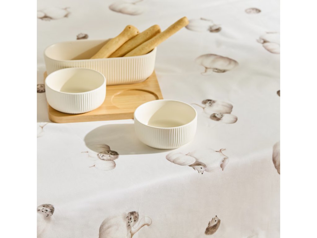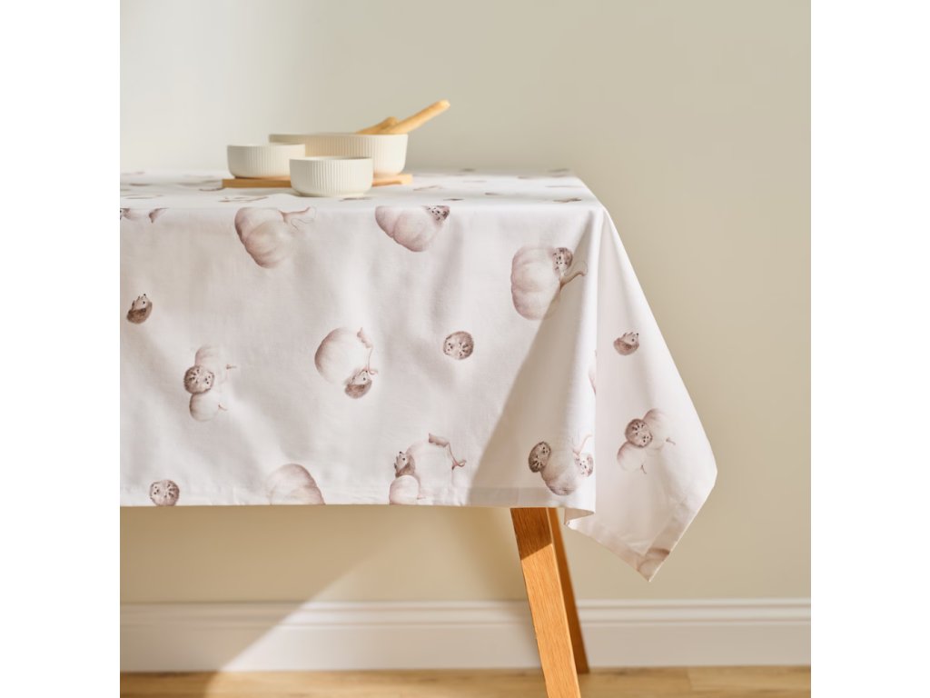 Obrus s potlačou z bavlny v svetlobéžovej farbe s motívom tekvice je štýlový doplnok, ideálny na jesenné dni. Je vyrobený z vysokokvalitného prírodného materiálu, spája funkčnosť s dekoračným charakterom. Vďaka rozmeru 130x180 cm sa skvele hodí na stôl strednej veľkosti a vnesie do interiéru hrejivý, sezónny akcent.