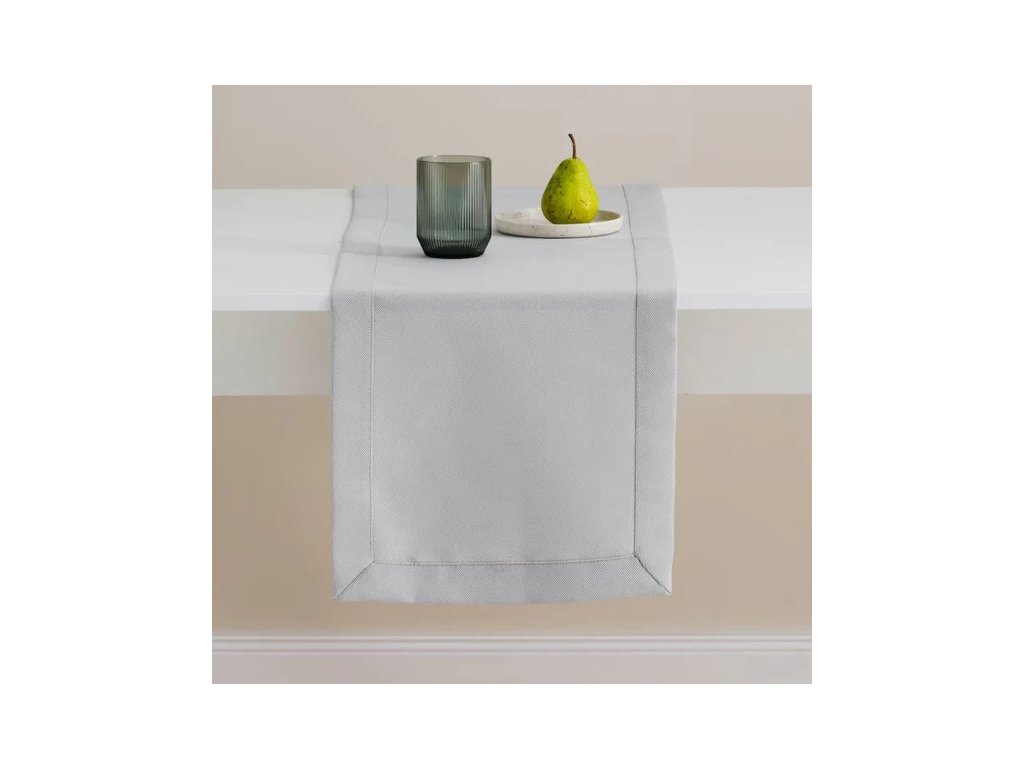 Sivá polyesterová štóla. Nielenže je to krásny dekoratívny doplnok vášho stola, ale ochráni aj vrchnú dosku pred poškodením a škvrnami. Dokonale ozdobí váš jedálenský stôl alebo doplní interiérový dizajn.
