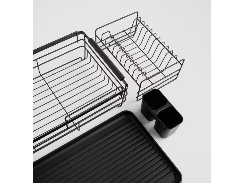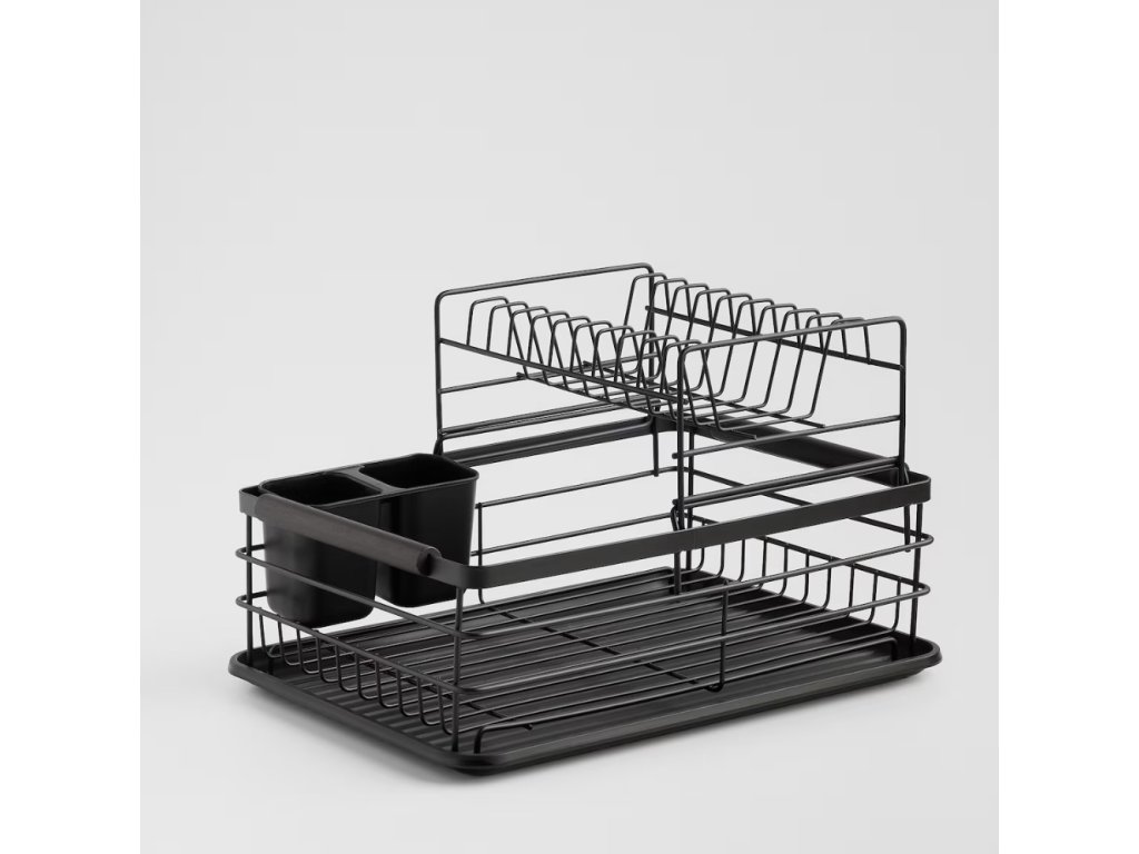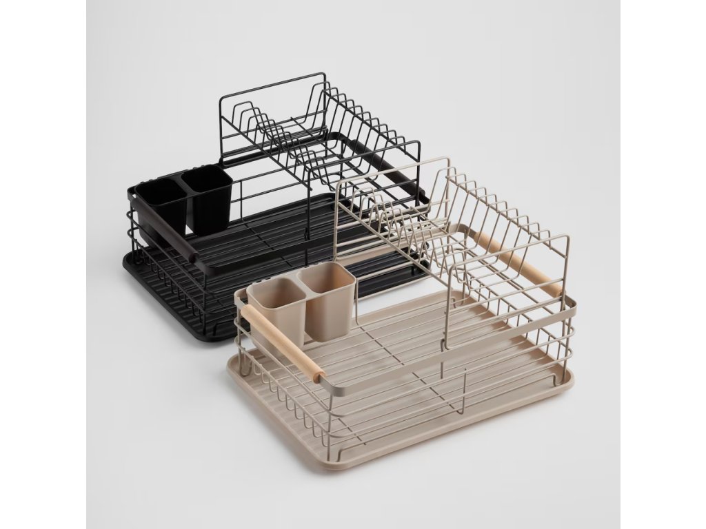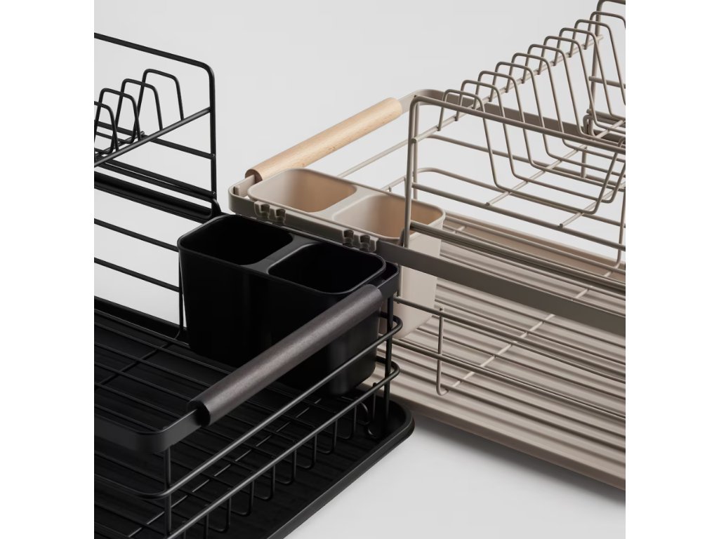 Odkvapkávač na riad Ardilas je ideálnou kombináciou industriálneho štýlu a maximálnej funkčnosti . Je vyrobený z odolného kovu v matnej čiernej farbe, doplnený o praktické detaily z dreva a plastu . Dvojúrovňová konštrukcia poskytuje dostatok miesta na taniere a šálky, zatiaľ čo odnímateľné priehradky slúžia na príbory a kuchynské náčinie . Matné spracovanie a čisté línie kovu v béžovom odtieni dodajú vašej kuchyni moderný a elegantný industriálny akcent . V balení nájdete 3 prvky – hlavný kovový odkvapkávač, spodnú plastovú tácku a držiaky na príbory.