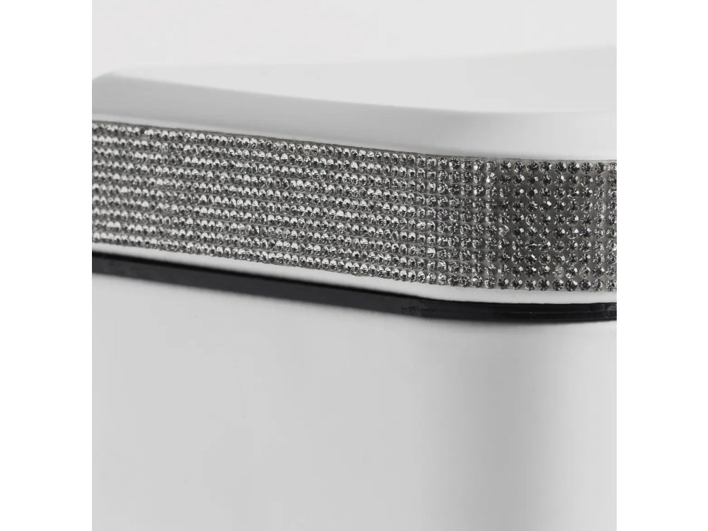 Foyer je biely kôš na smeti do kúpeľne, ktorý ozdobí interiér svojím detailom v štýle glamour. Hovoríme tu o orámovaní veka koša krásnymi, lesklými zirkónmi, dodávajúcimi miestnosti luxusný akcent. Biela farba produktu je zasa univerzálna, klasická a elegantná voľba. Vyzerá dokonale s akoukoľvek kombináciou farieb, harmonicky dopĺňajúc vybavenie kúpeľne.