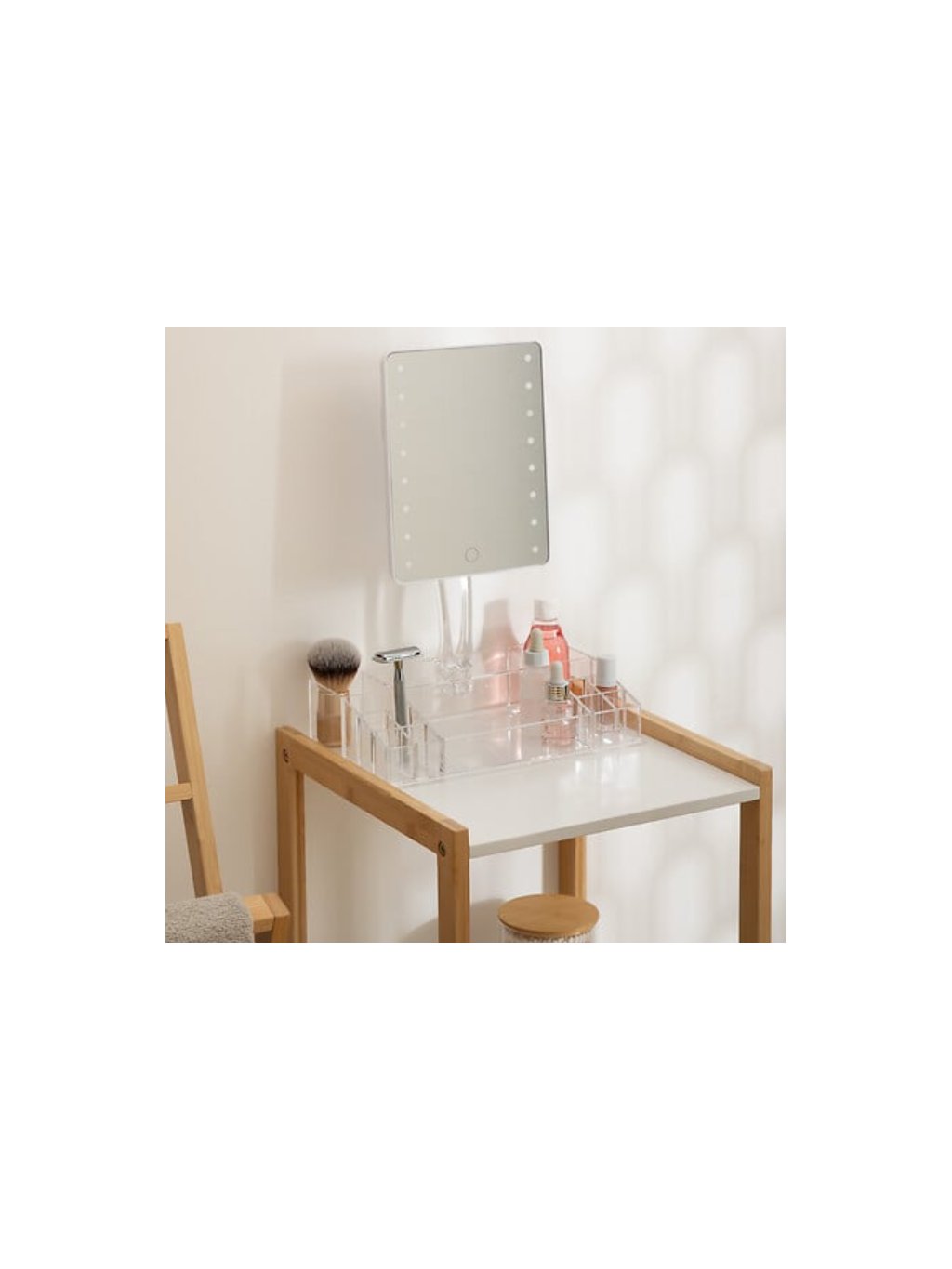 Zmeňte svoj kozmetický kútik na profesionálne štúdio krásy. Tento multifunkčný organizér z kolekcie Selena je dokonalým riešením pre každú ženu, ktorá chce mať svoj mejkap prehľadne usporiadaný a zároveň hľadá ideálne svetlo pre líčenie.