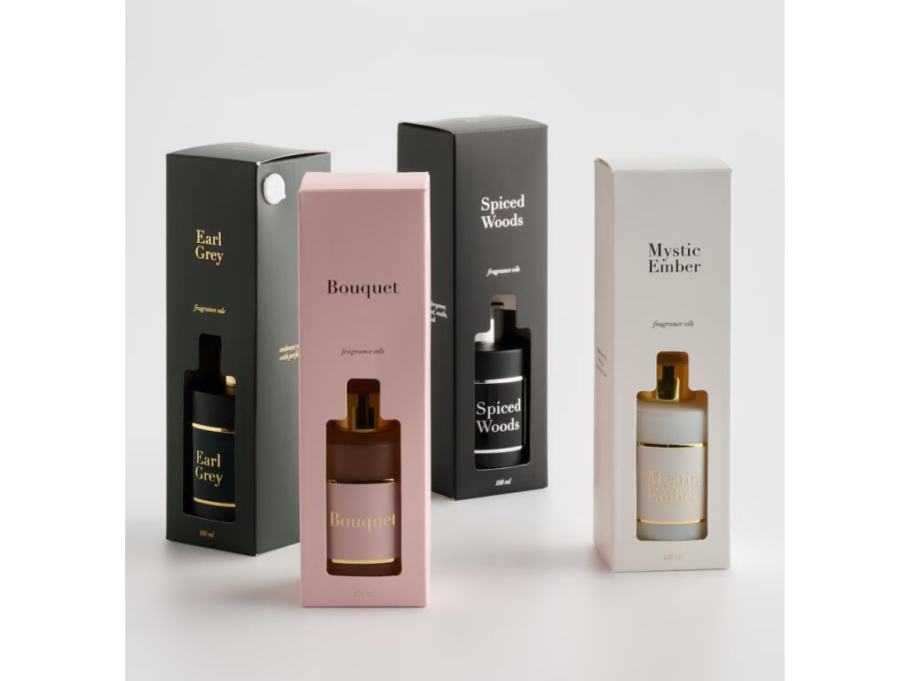 Materiál: sklo, DPM, vôňa, kov s povlakom, papier