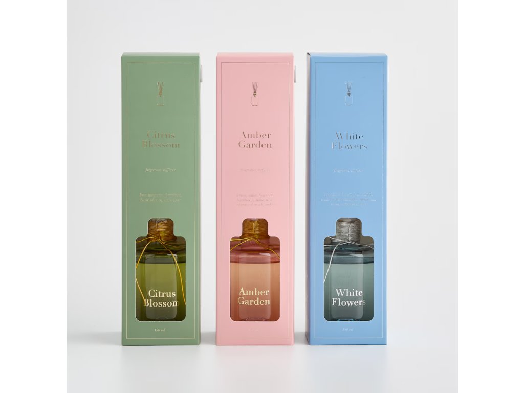 Tento difuzér v sklenenej fľaštičke s citrusovými tónmi kvetov je ideálny na prevoňanie interiéru sviežou a energickou vôňou, ktorá pripomína prírodu a jar. Estetické balenie vo farbe šalvie a zlatá šnúrka okolo fľaštičky podčiarkujú jeho luxusný a decentný charakter. Je dokonalým doplnkom na dodanie vitality a príjemnej arómy do každej miestnosti.