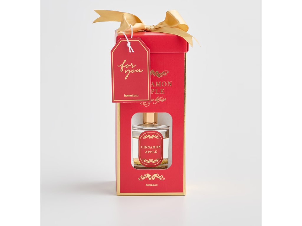 Dokonalý sviatočný darček! Vonný difuzér v elegantnom červenom balení so zlatou stuhou a visačkou "For You". S esenciou CINNAMON APPLE (Škoricové jablko) prinesie do vášho domova hrejivú, tradičnú a sviatočnú vôňu. Sklenená nádoba s objemom 100 ml a tradičným zdobením je štýlový doplnok pre vytvorenie vianočnej atmosféry. Ideálny darček pre blízkych!