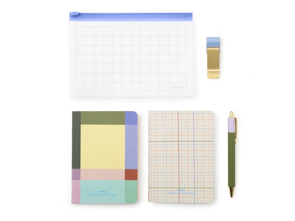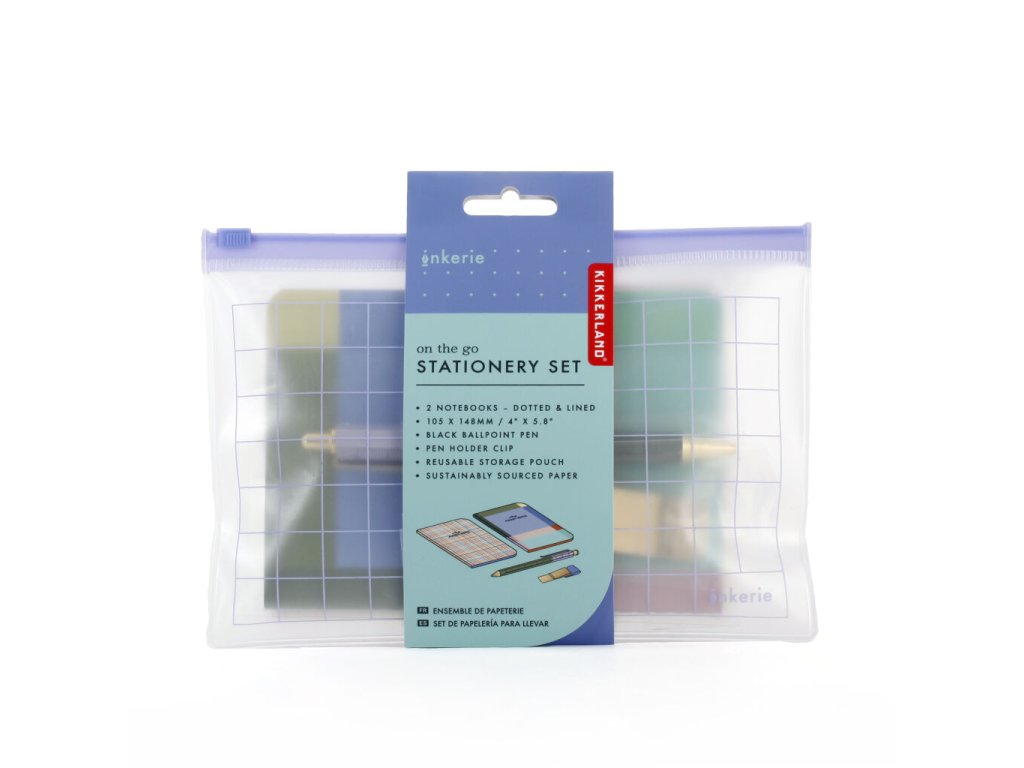 Majte všetko na jednom mieste s touto praktickou súpravou písacích potrieb – ideálnou na cestovanie a rýchle nápady, ktoré vás napadnú na cestách. Obsahuje dva zápisníky A6 (jeden linajkový, jeden bodkovaný), čierne guľôčkové pero, klip na uchytenie pera k zápisníku a opakovane použiteľné puzdro.