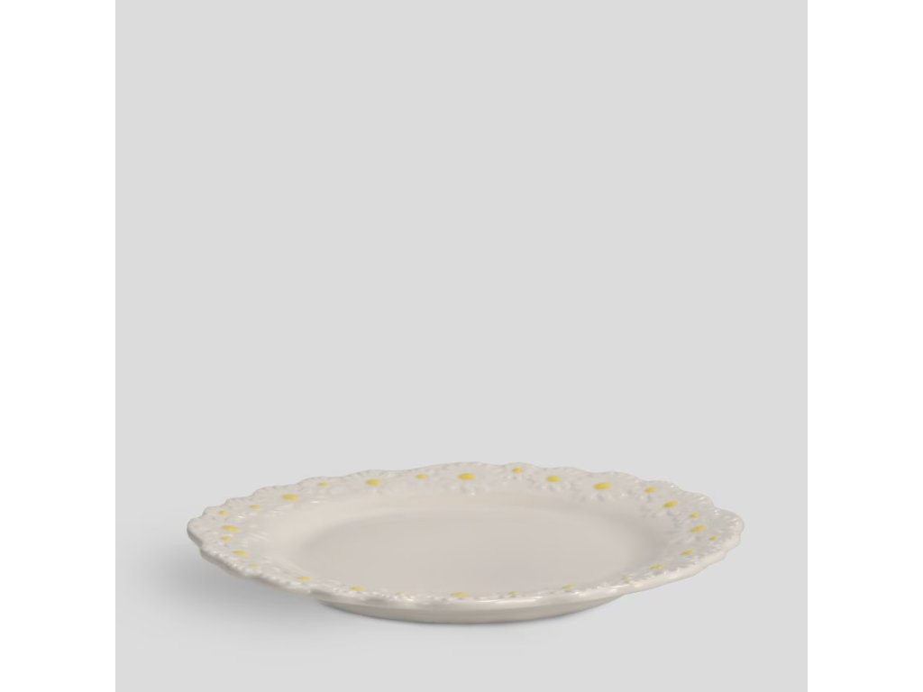 Biely porcelánový tanier zdobený jemným vzorom sedmokrások spája eleganciu s jemným šarmom prírody. Jeho klasický dizajn a jemná výzdoba z neho robia perfektný doplnok na formálne večere, ale aj na každodenné jedlá. Perfektná voľba pre stôl, ktorý dodá ľahkosť a sviežosť akémukoľvek aranžmánu.