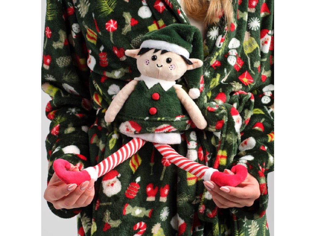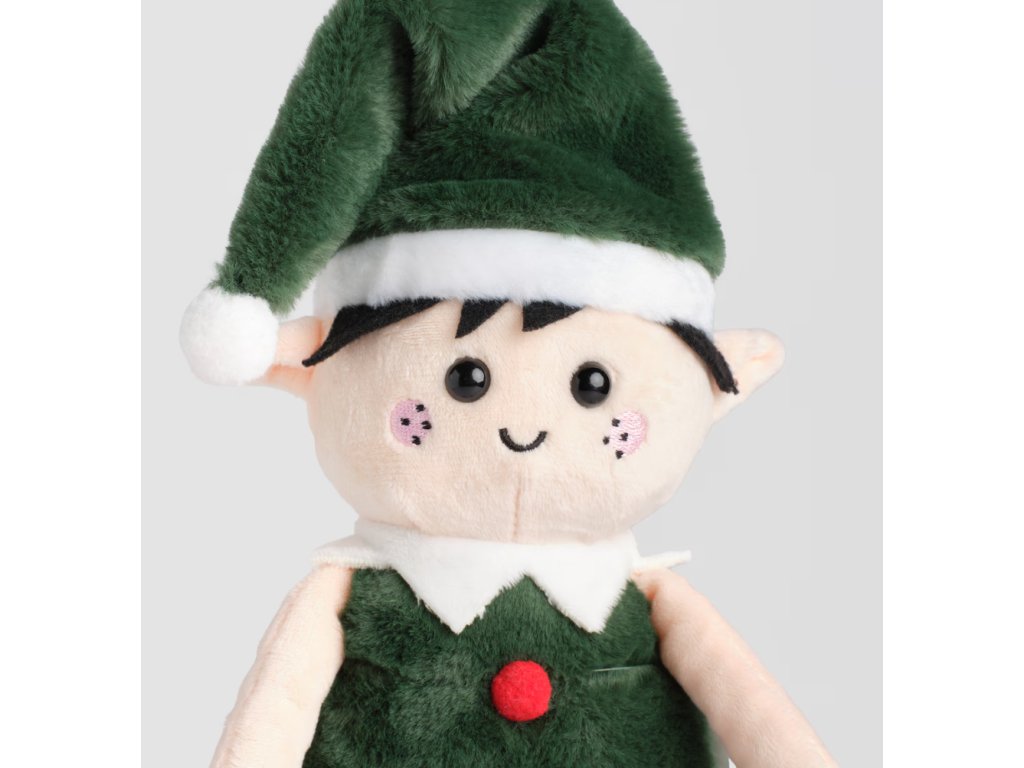 Elfi je pôvabná postavička v klasických, sviatočných farbách. Červená, zelená a biela farba tvoria krásnu kompozíciu, ktorá sa ideálne hodí do vianočnej atmosféry. Elfi, oblečený v zelenom kabátiku a červených, pásikavých nohaviciach, pôsobí mimoriadne rozkošne. Plyšová hračka bude nádhernou ozdobou detskej izby, ako aj ideálnym nápadom na vianočný darček.