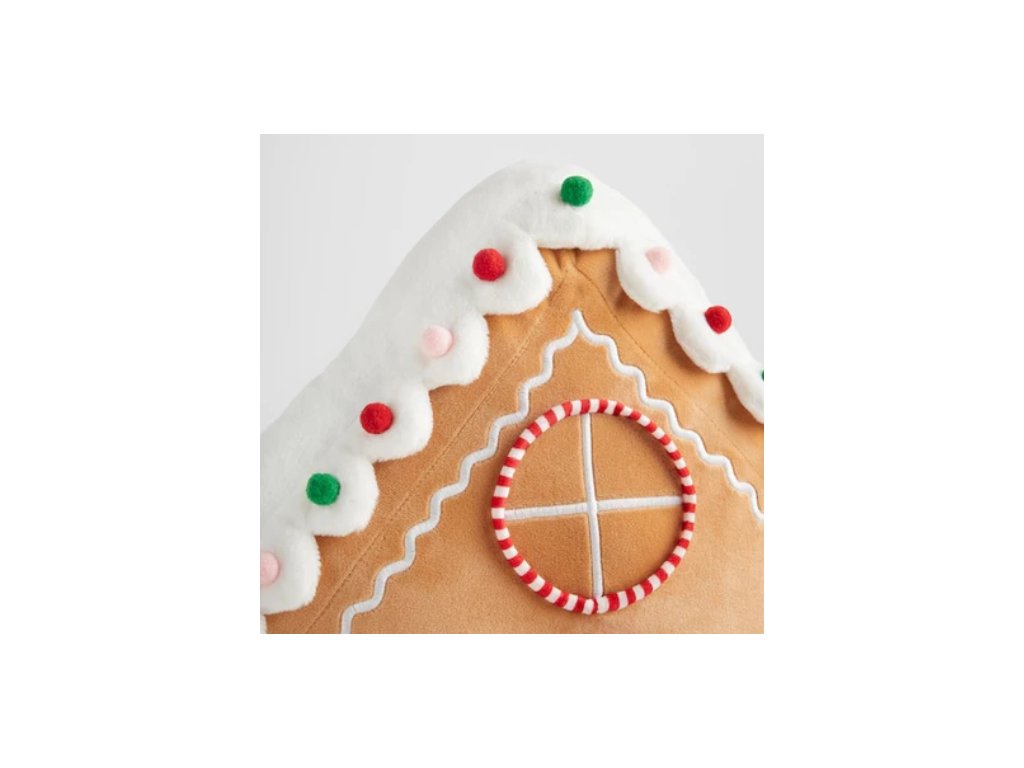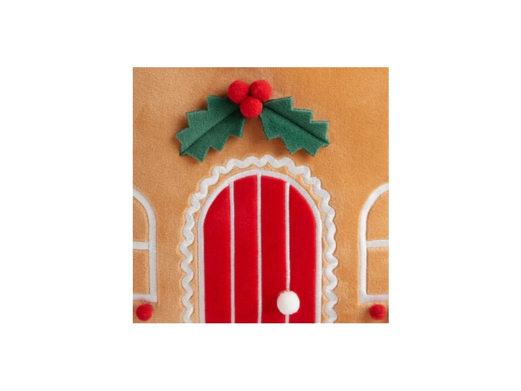 Tento vankúš v tvare perníkovej chalúpky, zdobený polevou, farebnými cukríkmi a slávnostnou vetvičkou imela, je stelesnením vianočného dizajnu. Béžový plyš dokonale imituje upečený perník, zatiaľ čo červeno-biele detaily dodávajú šarm. Vankúš Gingernest sa perfektne hodí do každého sviatočného interiéru a dodá mu útulnosť a rozprávkovú atmosféru. Je tiež skvelým darčekom pre milovanú osobu.