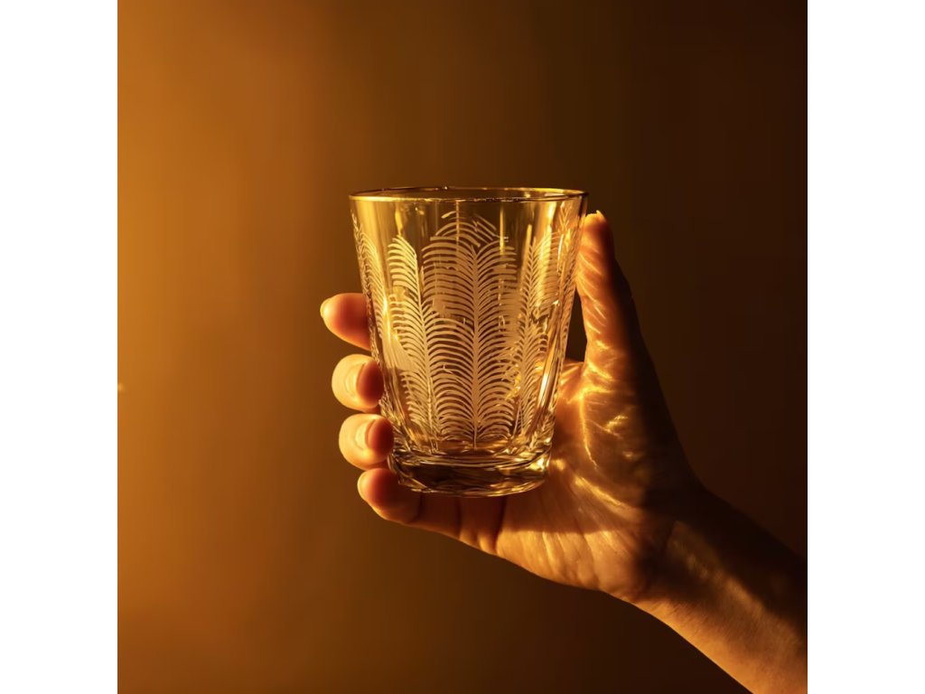 Pohár zo sodno-vápenatého skla so zlatým okrajom, s objemom 300ml. Je elegantný a štýlový, dokonalý na servírovanie nápojov.