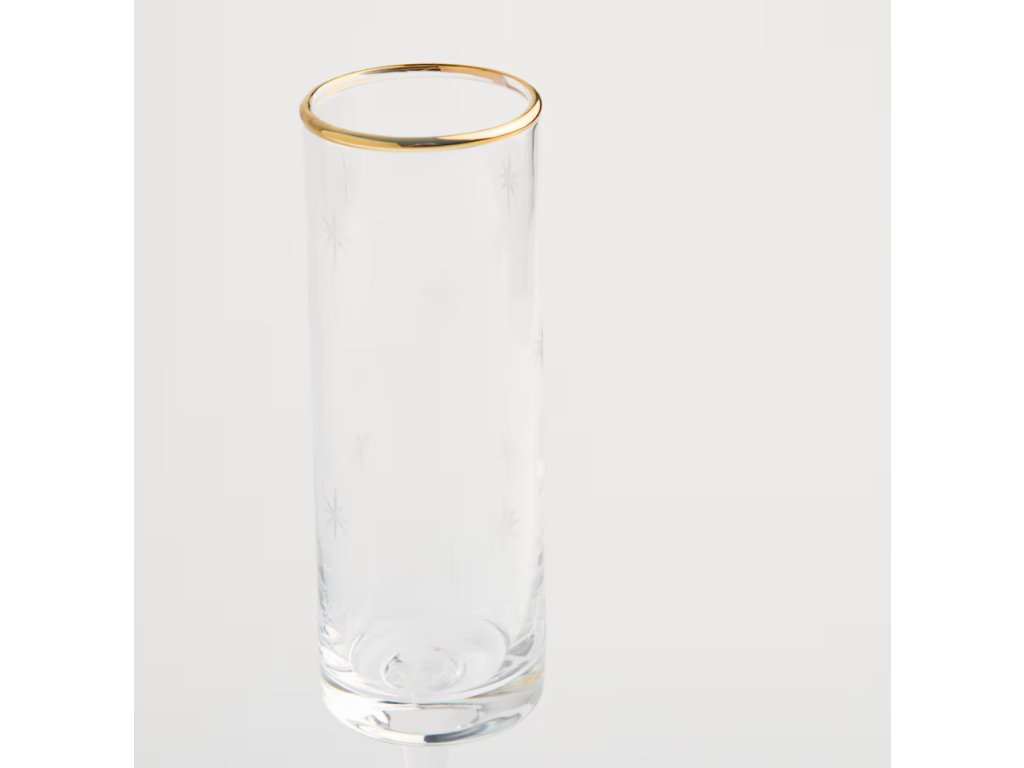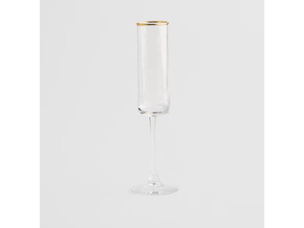 Priehľadné sklo krásne exponuje bublinky šampanského a jemné zdobenie a zlatý okraj mu dodávajú výnimočný šmrnc.