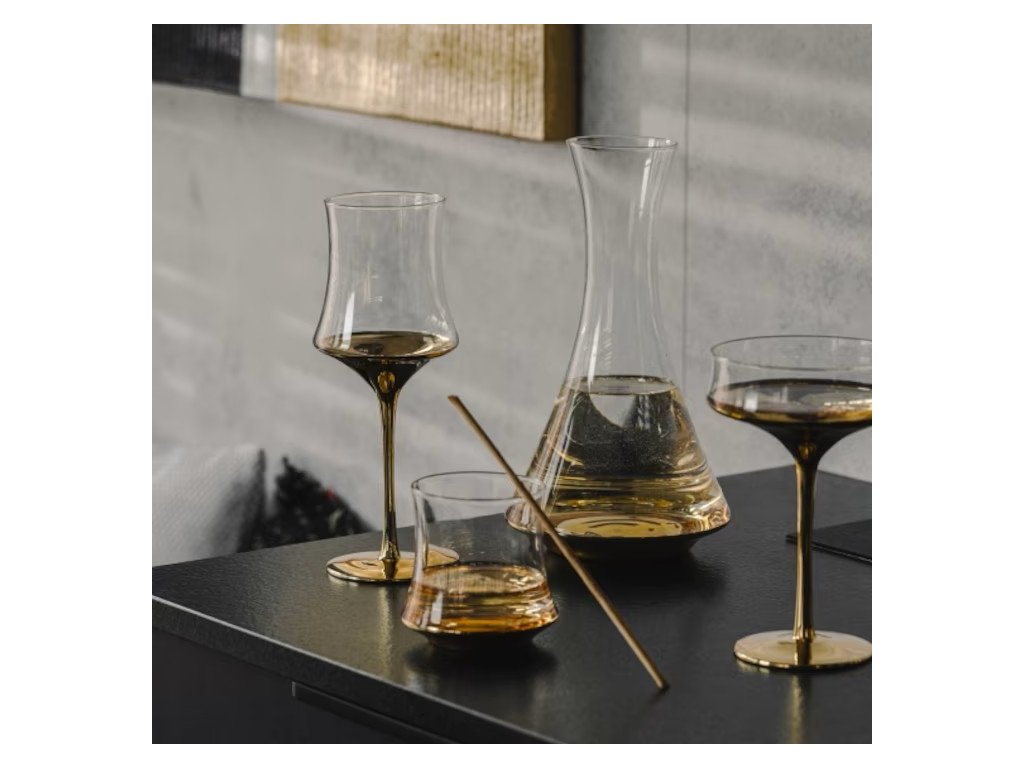 Farba: transparentná/ zlatáMateriál: sódovo-vápenaté skloRozmery: 10,5cm x 24,5cmObjem: 580ml