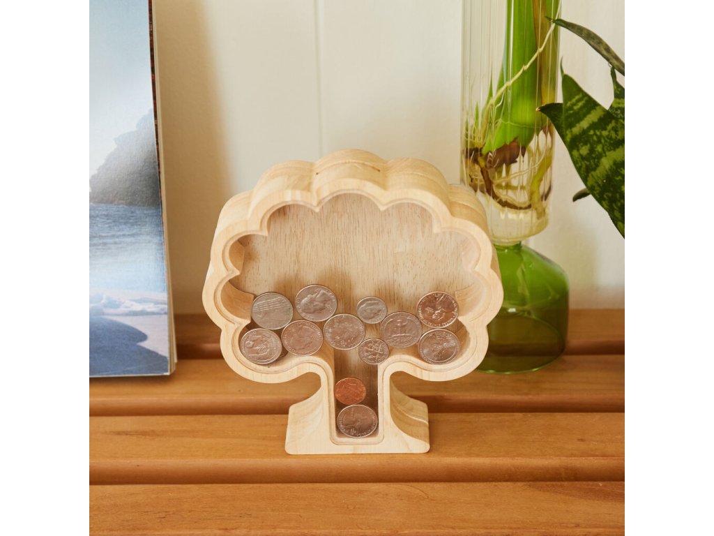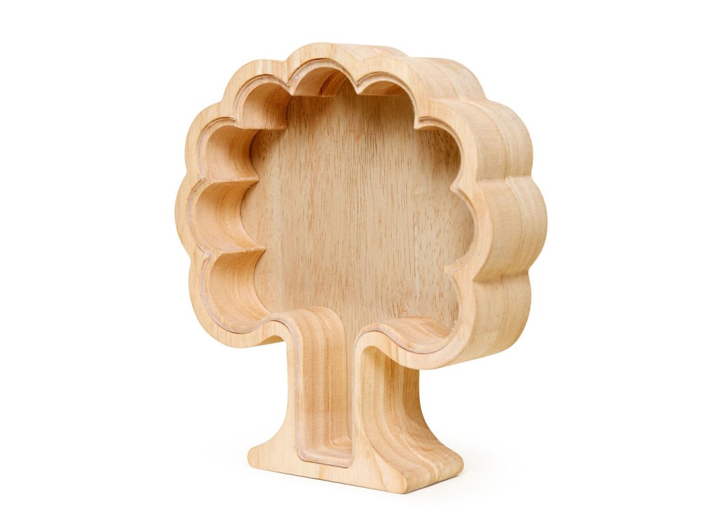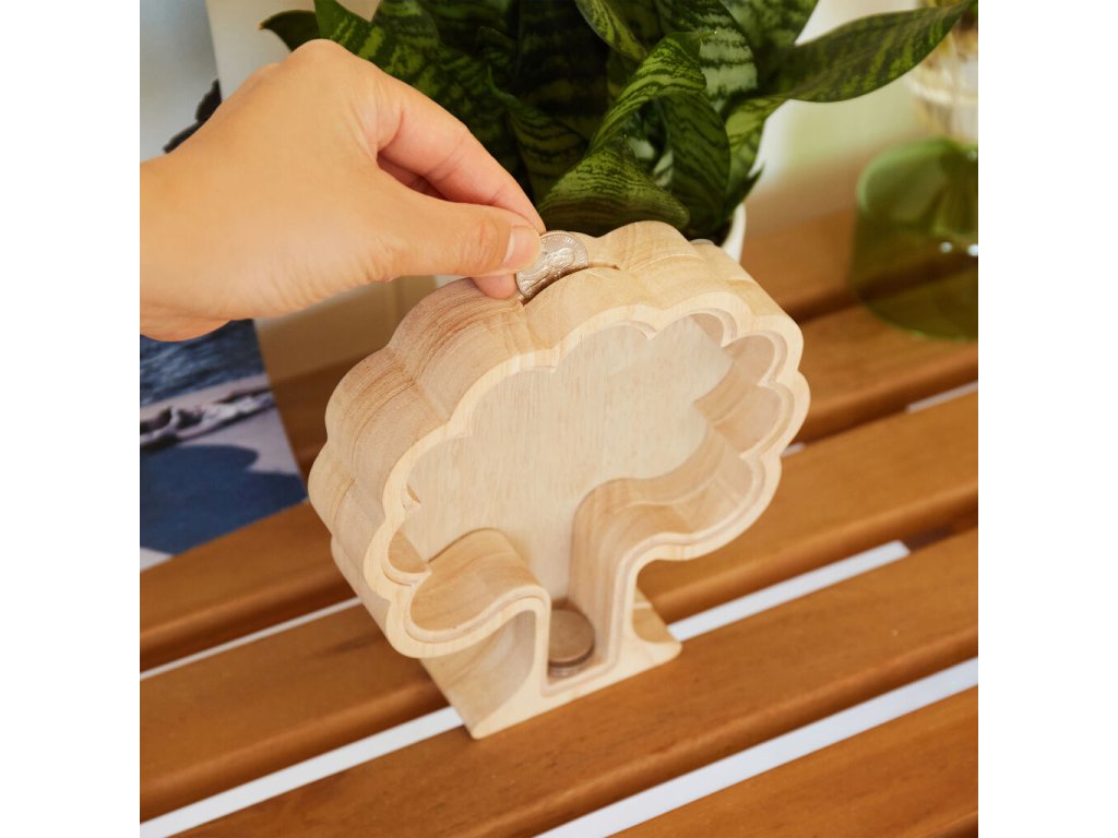 Táto drevená pokladnička v tvare stromu prináša hravý a vizuálne príťažlivý spôsob, ako začať šetriť. Je navrhnutá tak, aby ste doslova videli, ako vám peniaze "rastú", čo je skvelá motivácia najmä pre deti.