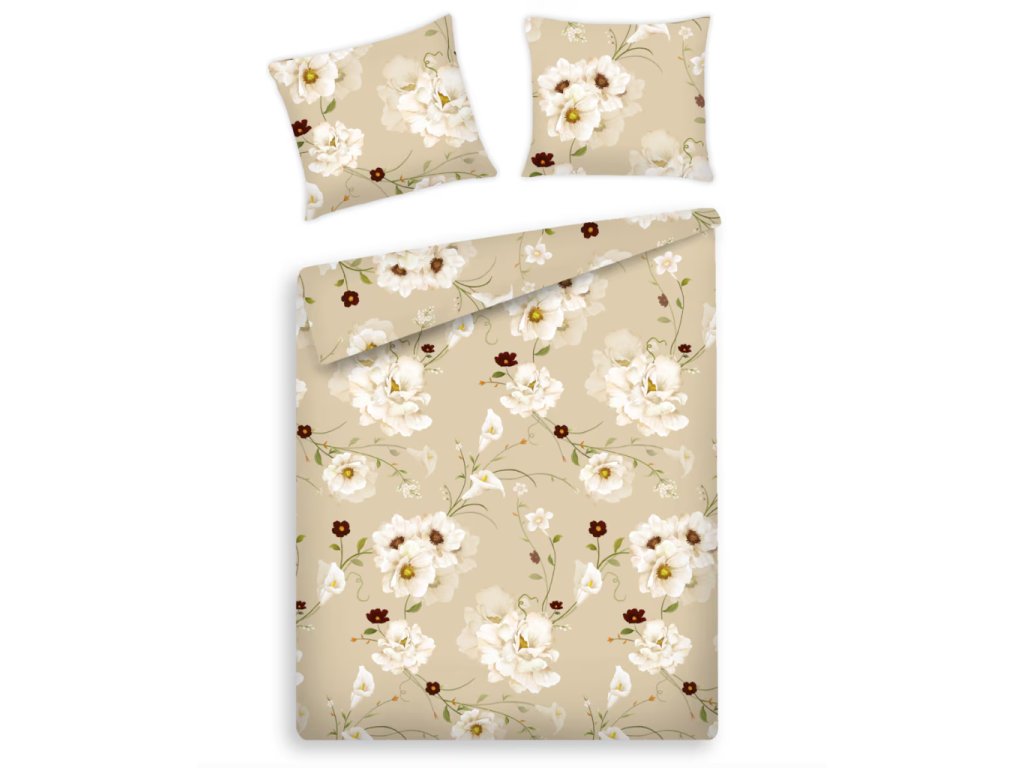 Béžová farba obliečok vytvára v spálni teplú a útulnú atmosféru. Kvetinový motív, zobrazujúci jemné, biele kvety s bordovými akcentmi, dodáva obliečkam romantický charakter. Obliečky Blisoll sa ideálne hodia do interiérov zariadených v klasickom, romantickom, ako aj modernom štýle. Je to vynikajúci nápad na darček pre blízku osobu.