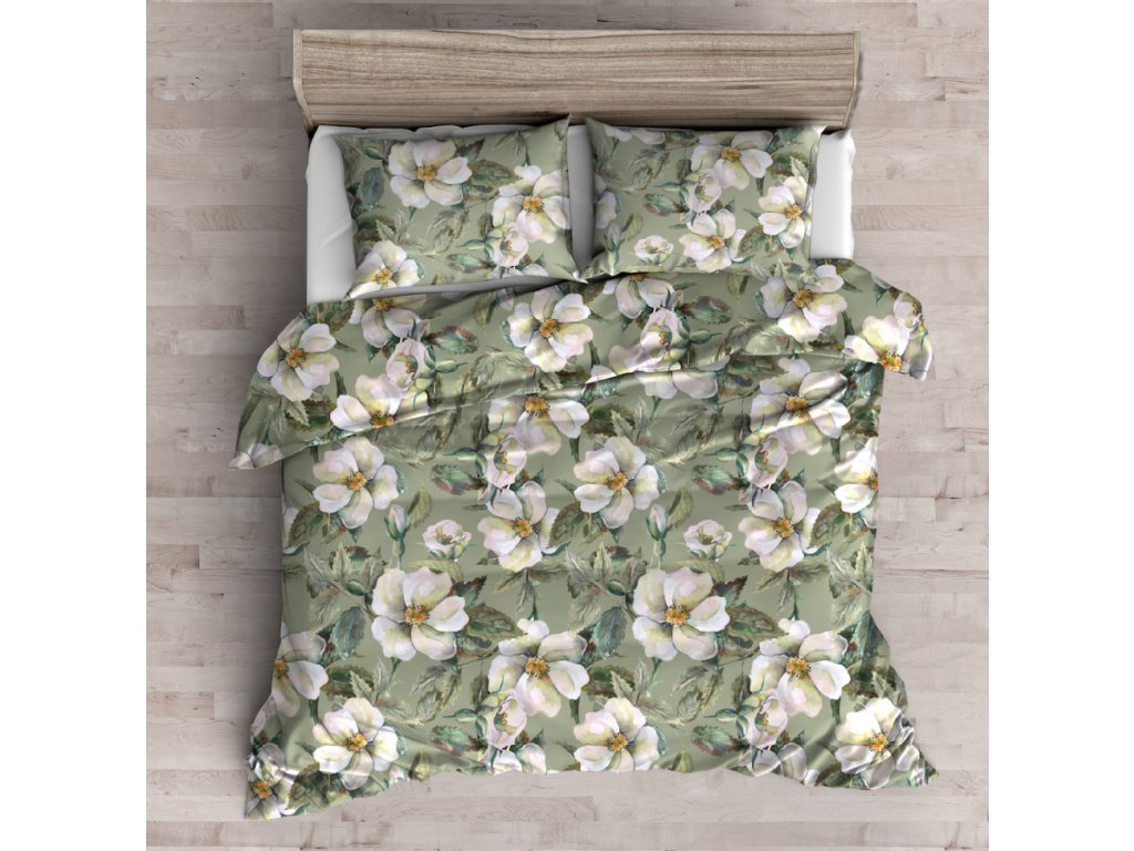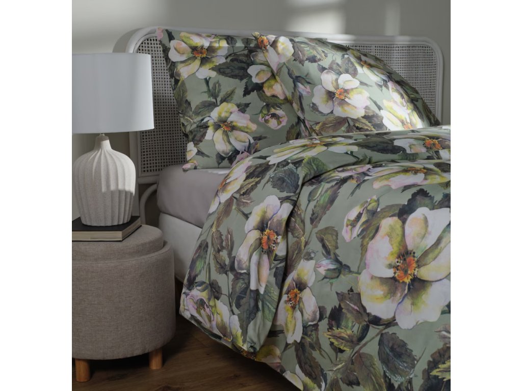 Elegantná posteľná bielizeň vyrobená zo saténovej bavlny s gramážou 110 g/m², v rozmere 200x220 cm. V súprave sa nachádzajú dve obliečky na vankúše s rozmermi 70x80 cm. Celok je udržaný v svetlozelenej farbe s decentným kvetinovým motívom, ktorý dodá interiéru sviežosť a pôvab.