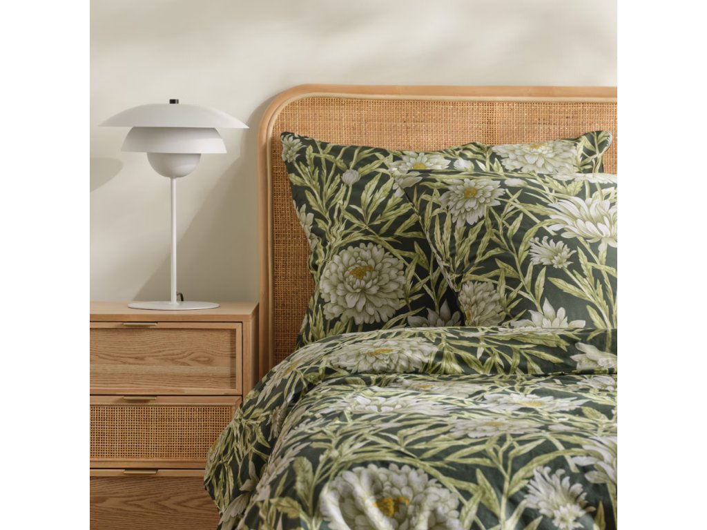 Tmavozelená posteľná bielizeň zo saténovej bavlny s gramážou 120 g/m² je dokonalou kombináciou elegancie a komfortu. Je vyrobená z vysokokvalitnej prírodnej tkaniny, vyznačuje sa jemným leskom saténu, mäkkosťou a priedušnosťou, ktoré zaisťujú príjemný a pokojný spánok. Posteľnú bielizeň v rozmere 200x220 cm zdobí decentný motív kvetov, ktorý vnáša do interiéru spálne nádych sviežosti a prírodnej krásy. Hlboká tmavozelená farba dodáva celku výnimočný charakter, vďaka čomu sa súprava dokonale hodí k rôznorodým aranžmánom, od klasických po moderné. Je to ideálna voľba pre ľudí, ktorí si cenia štýl, kvalitu a komfort každý deň.