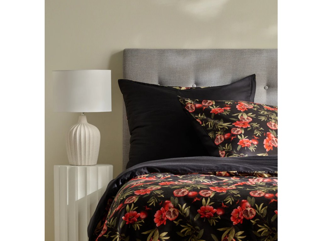 Charakteristické čierne pozadie, obohatené o detailný, rastlinný motív červených kvetov, zelených listov a plodov granátového jablka (granadillo), robí z posteľnej bielizne neobyčajnú ozdobu každej spálne. Elegantná, intenzívna farebnosť zvýrazní štýl moderných a klasických interiérov. Granadillo sa skvele hodí do minimalistických aranžmánov, ako aj ako výnimočný darček pre blízku osobu.