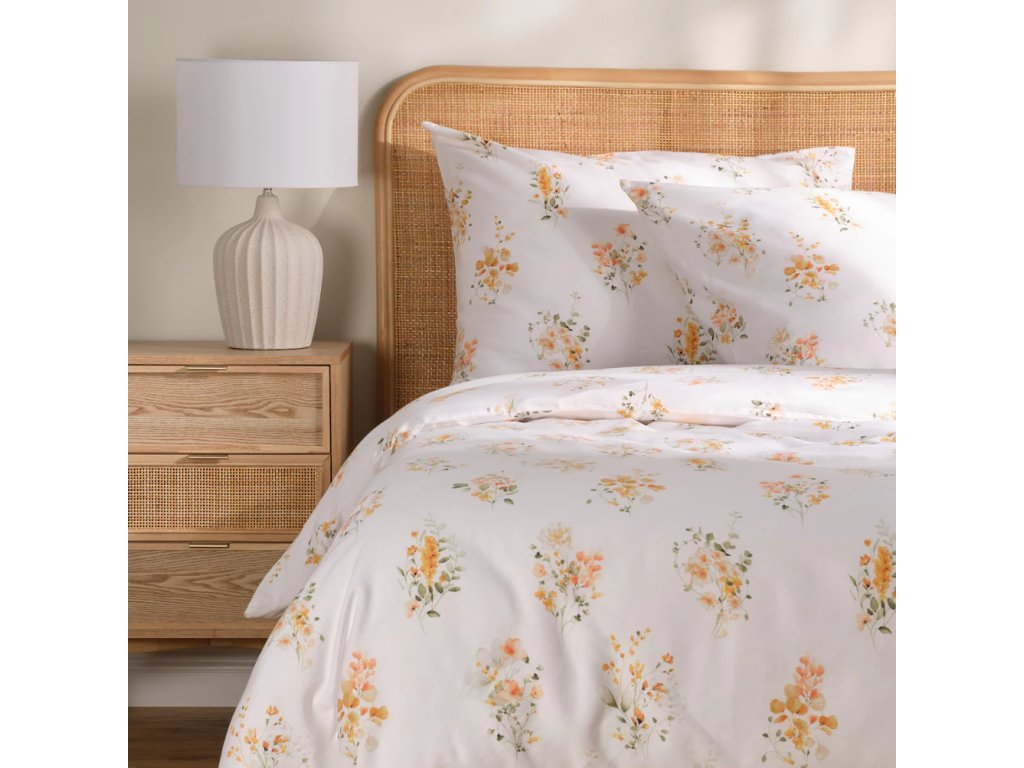 Krásne obliečky vyrobené z vysokokvalitného bavlneného saténu, ozdobené jemným kvetinovým vzorom, ktorý vnáša do spálne sviežosť a ľahkosť. Gramáž zabezpečuje mäkkosť a komfort spánku, a zároveň umožňuje pokožke dýchať. Obliečky s rozmermi 160 × 200 cm sa dokonale hodia na jednolôžkové alebo menšie dvojlôžkové postele. Hladký a mierne lesklý povrch bavlneného saténu dodáva eleganciu a estetiku každému interiéru. Produkt je ľahký na údržbu, odolný voči žmolkovaniu a trvácny aj po opakovanom praní.