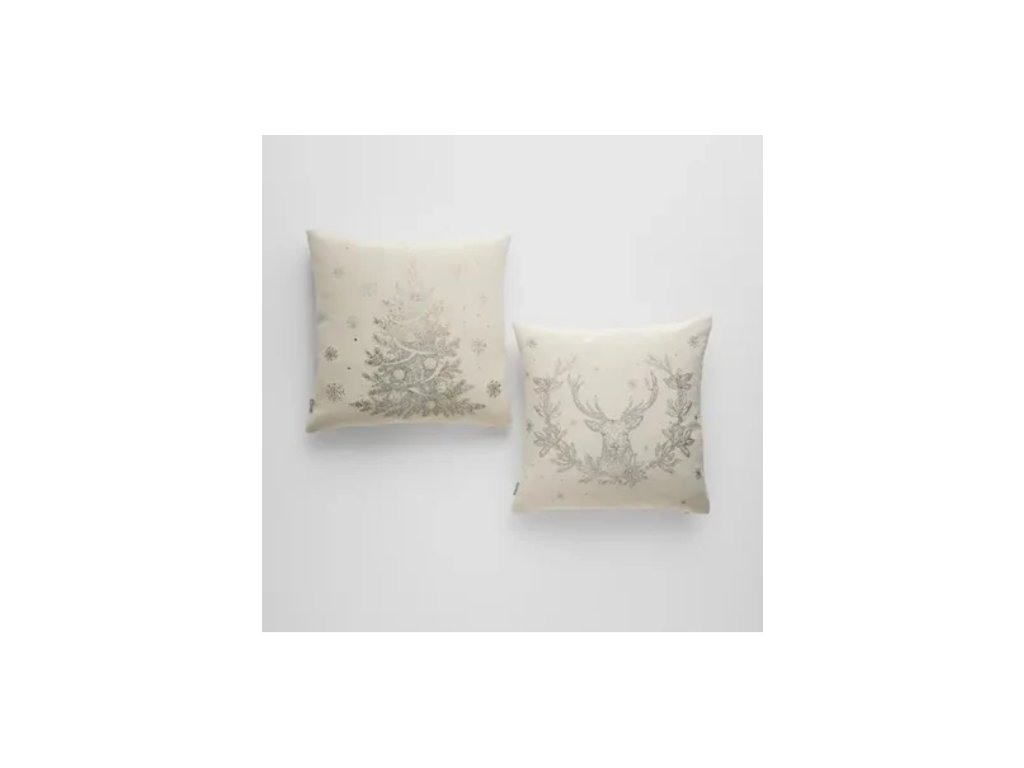 Krémová béžová farba s elegantným, trblietavým vzorom jeleňov a vianočného stromčeka zdôrazňuje slávnostný a moderný charakter dekorácie. Jemné zlaté a strieborné akcenty umocňujú luxusný efekt a všestranná farebná schéma sa hodí do očarujúcej obývačky aj útulnej spálne. Perfektná voľba ako výrazný detail interiéru na zimu – obliečka na vankúš holivedo je tiež skvelým darčekom.