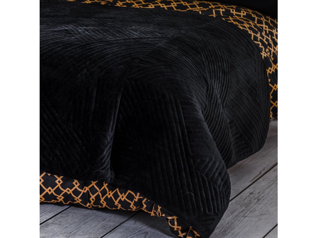 Minister je čierny prehoz na posteľ 200x220 cm, so vzorovanou textúrou, vyhotovený z velúru (welwet). Je to produkt, ktorý zapadne do estetiky minimalizmu, surovosti, luxusu aj klasiky. Takéto typy doplnkov do spálne nikdy nevyjdú z módy!