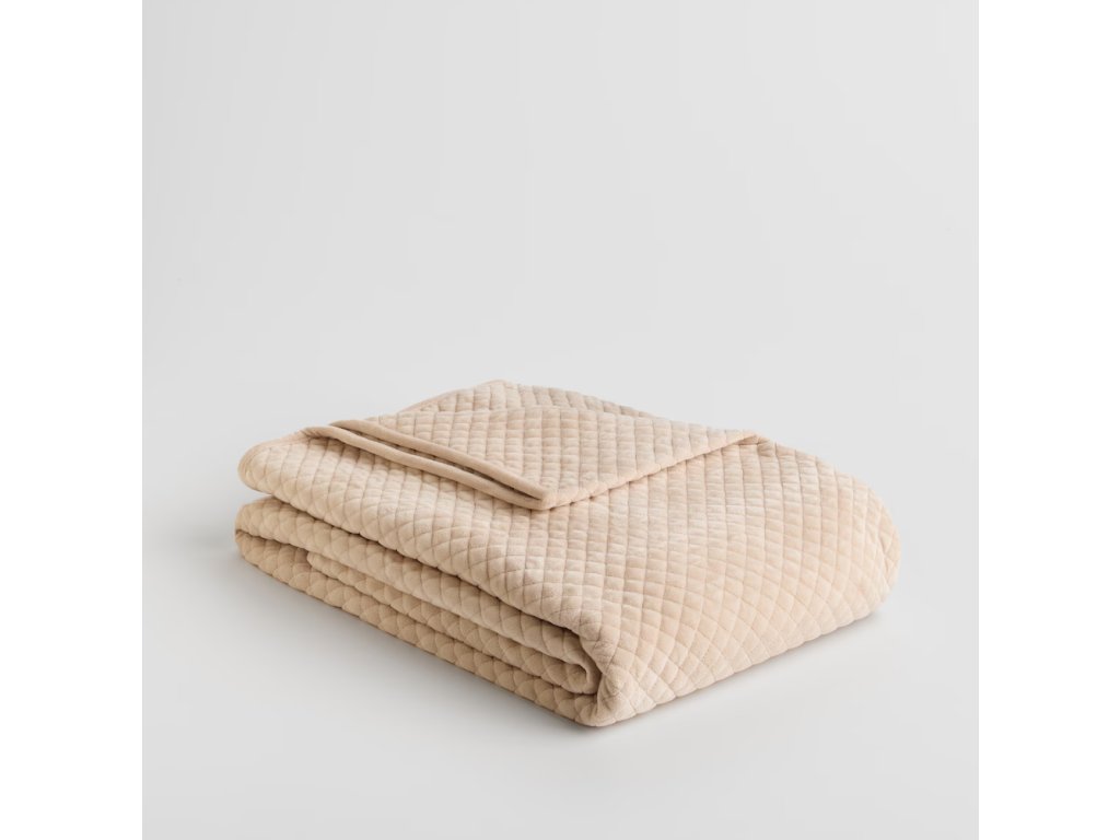 Štýlový prehoz v elegantnej svetlobéžovej farbe, vyrobený z mäkkého materiálu. Vo veľkom rozmere 200x220 cm sa dokonale osvedčí na manželskej posteli, dodávajúc spálni útulný a uprataný vzhľad. Vysoká gramáž 380 g/m² zaisťuje vhodnú hrúbku, mäkkosť a trvácnosť tkaniny, a jemný velúrový lesk dodáva interiéru decentnú eleganciu. Prehoz je ideálny na každodenné použitie, ale aj ako dekoračný akcent v aranžmánoch interiérov v klasickom, modernom alebo škandinávskom štýle.