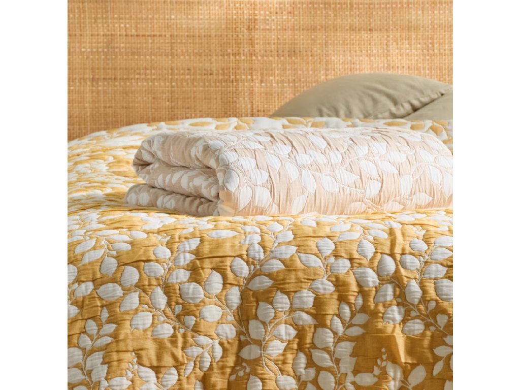 Prehoz v béžovej farbe s decentným rastlinným motívom, s rozmermi 200 x 220 cm a gramážou 340 g/m², je elegantný a funkčný doplnok do každej spálne alebo obývacej izby. Prírodná farebná škála a unikátny rastlinný vzor vnášajú do interiéru harmóniu a útulnosť. Materiál spája trvácnosť polyesteru s mäkkosťou bavlny a zabezpečuje komfort používania a ľahkú údržbu.