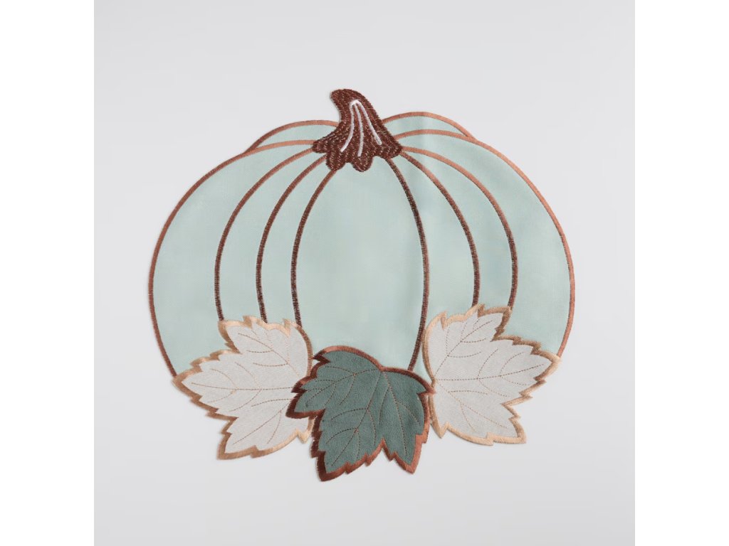 Dekoračné prestieranie v tvare tekvice je pôvabný akcent, ktorý vnesie do interiéru jesennú atmosféru a teplo prírodných farieb. Je vyrobené z kombinácie polyesteru s prímesou viskózy, spája v sebe odolnosť s jemným leskom a príjemnou textúrou. Jeho starostlivo prepracovaný tvar a decentné detaily zaručujú, že sa skvele hodí ako ozdoba na stôl, komodu alebo konferenčný stolík. Je ideálne pod riad, svietniky alebo ako samostatná sezónna dekorácia.