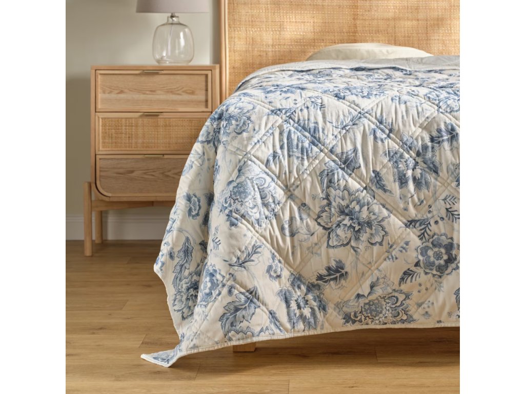 Štýlová prikrývka na posteľ s rastlinným vzorom je ideálnym doplnkom do každej spálne. Mäkký a na dotyk príjemný materiál zaisťuje pohodlie a rozmer 200 cm x 220 cm sa dokonale hodí na veľké postele. Prikrývka dodáva interiéru ľahkosť a eleganciu.