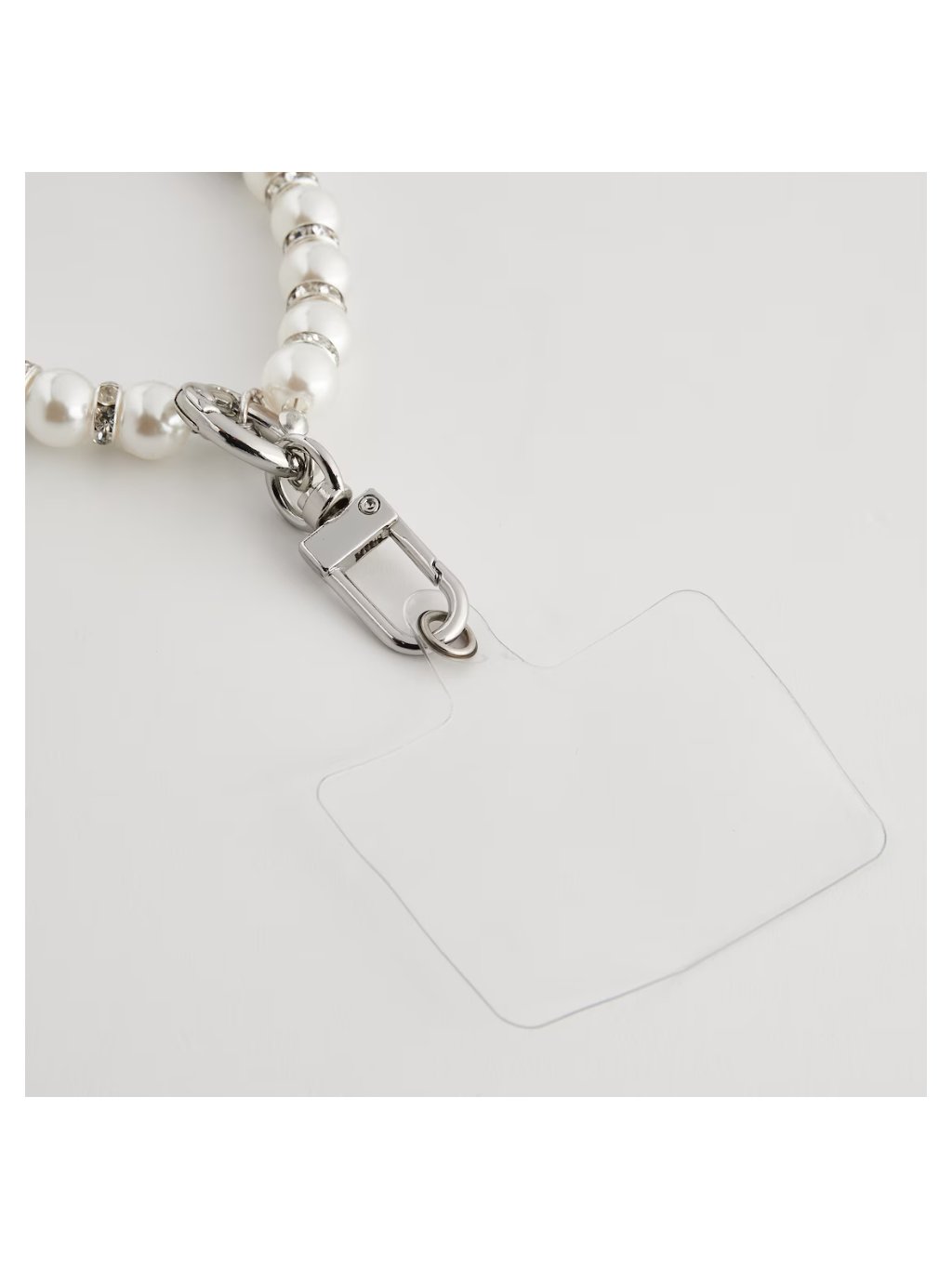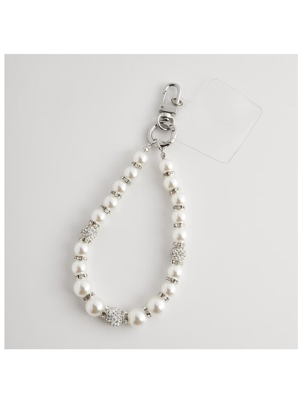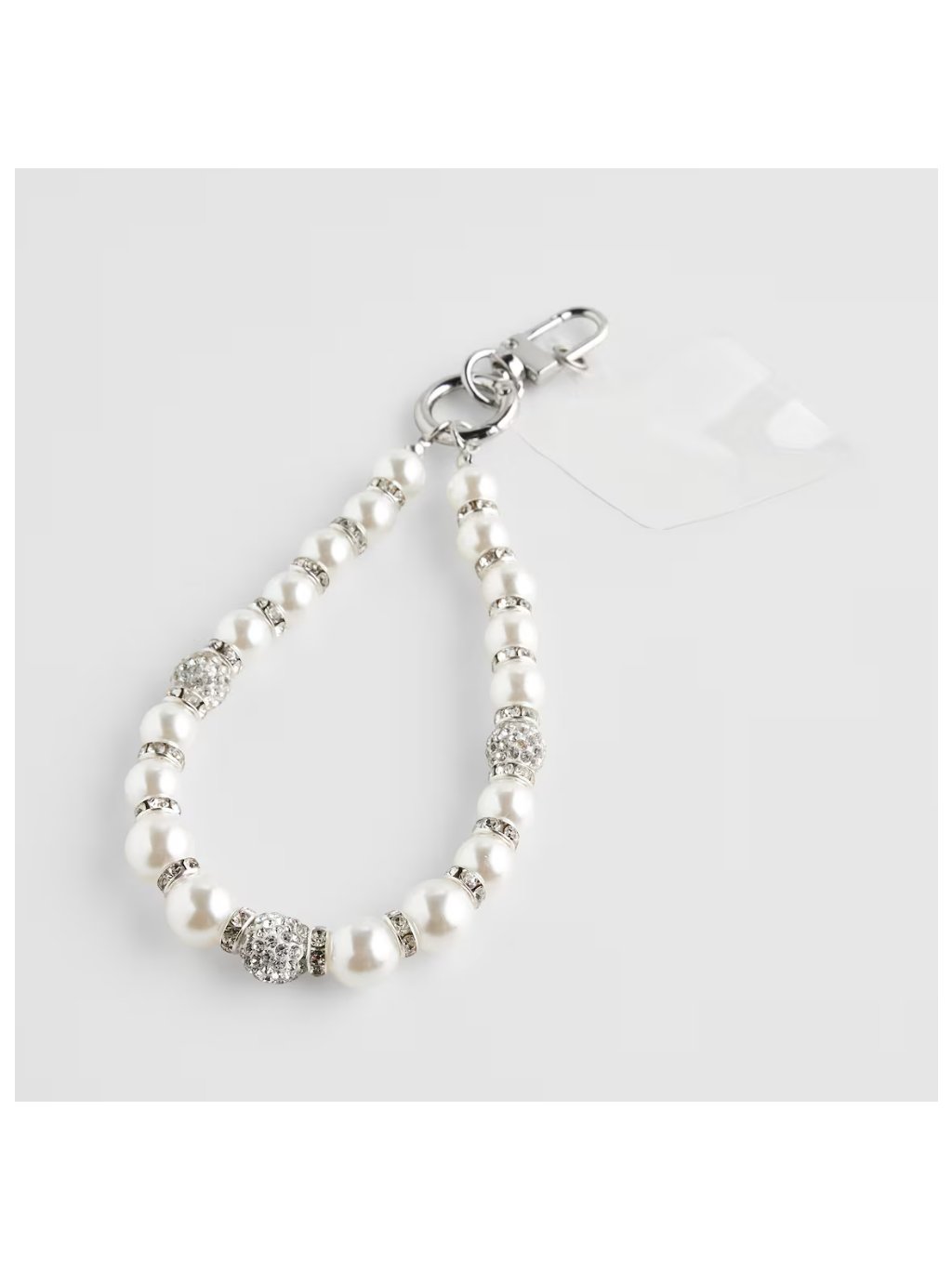 Dodajte svojmu dňu štipku glamour štýlu s týmto elegantným príveskom. Kombinácia jemných perál a trblietavých detailov vytvorí z vášho mobilu, kľúčov či kabelky neprehliadnuteľný módny kúsok.