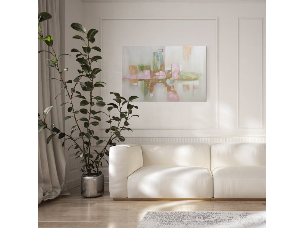 Elegantný obraz na plátne v svetlozlatom odtieni. Jeho subtílna farebnosť a moderný dizajn vnášajú do interiéru teplo a štýl. Ideálny na dekoráciu obývačky, spálne alebo kancelárie, dodáva priestoru elegantný a súčasný charakter.