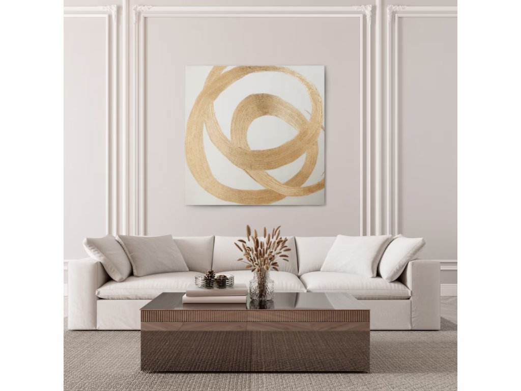 Elegantný obraz na plátne v zlatej farbe, s rozmermi 100 cm x 100 cm. Jeho subtílna, zlatá tónina dodáva interiéru luxusný charakter, vnášajúc doň teplo a eleganciu. Ideálny pre moderné a klasické aranžmány, dokonale sa hodí do obývačky, spálne či kancelárie, predstavujúc výnimočnú dekoráciu, ktorá priťahuje pohľad.