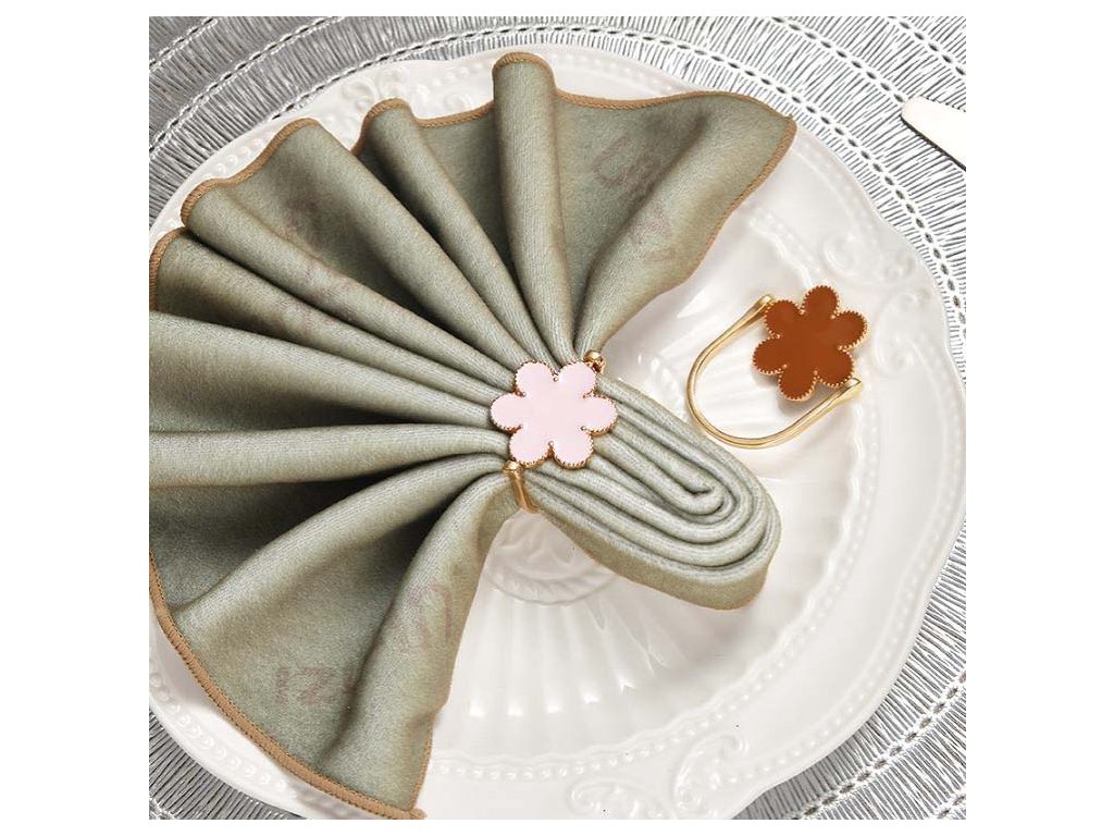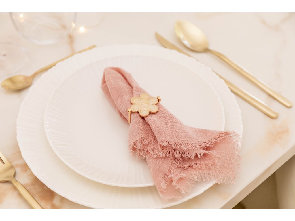 Ružové a zlaté kvetinové krúžky na obrúsky – súprava 4 kusov