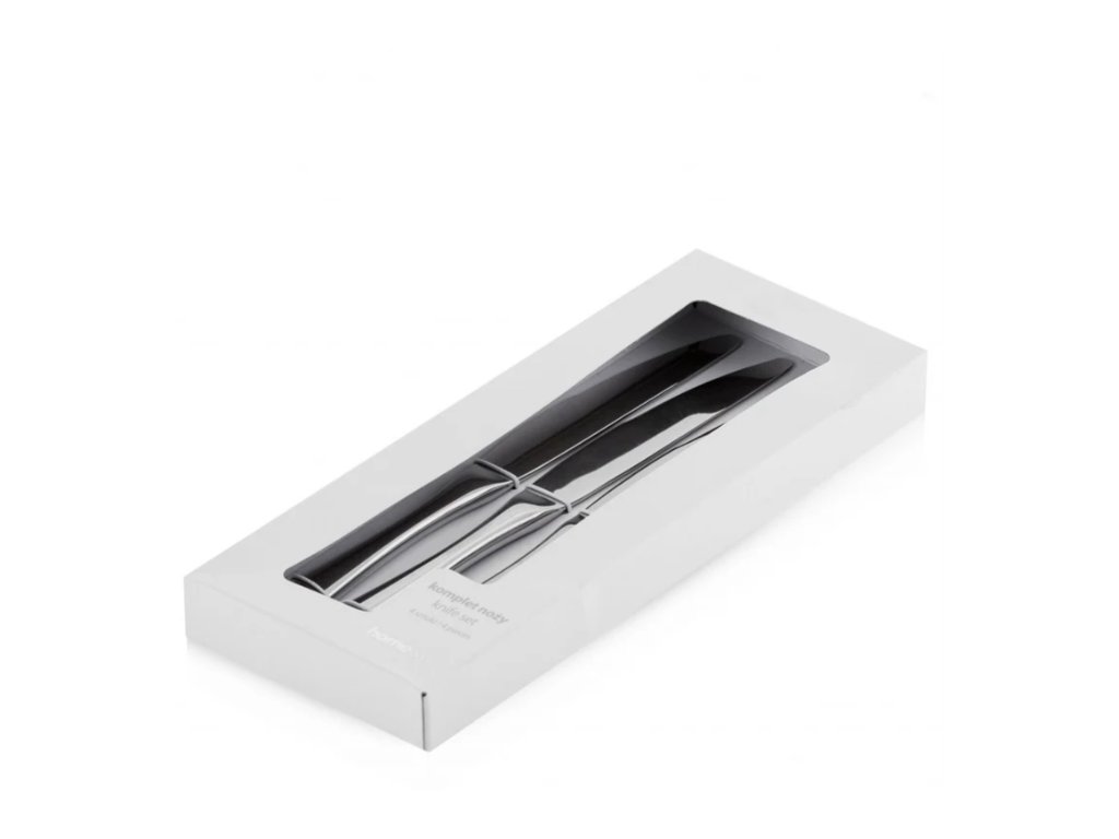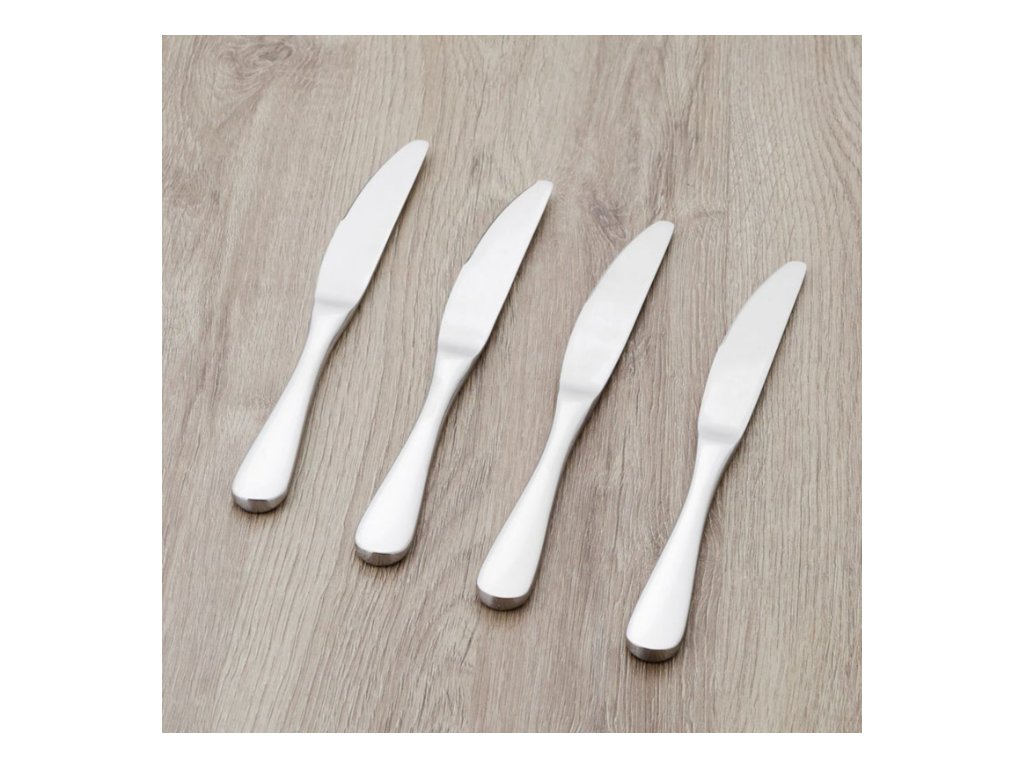 Strieborná sada štyroch príborových nožov z nehrdzavejúcej ocele. Majú klasický design. Vhodné do domácností, aj pre profesionálnu gastronómiu.