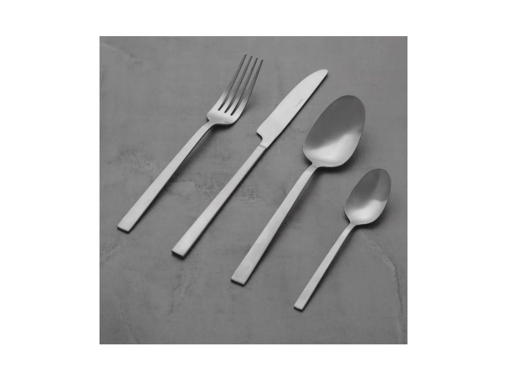 Strieborný príbor. Dokonale zapadá do modernej, elegantnej estetiky a je originálnym doplnkom stolovania. Nerezové príbory sú odolné voči chemickým a elektrochemickým reakciám a zostávajú v dobrom stave po dlhú dobu. Nemali by sa však umývať v umývačke riadu. Súprava príborov pozostáva z jednej čajovej lyžičky, lyžice, vidličky a noža.