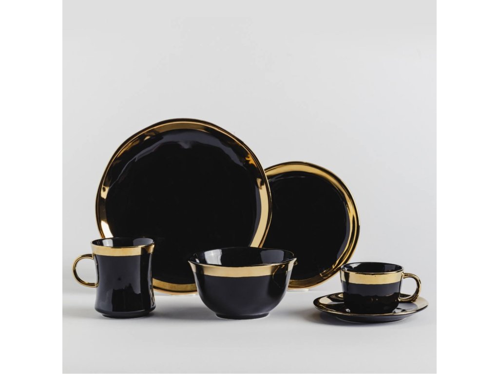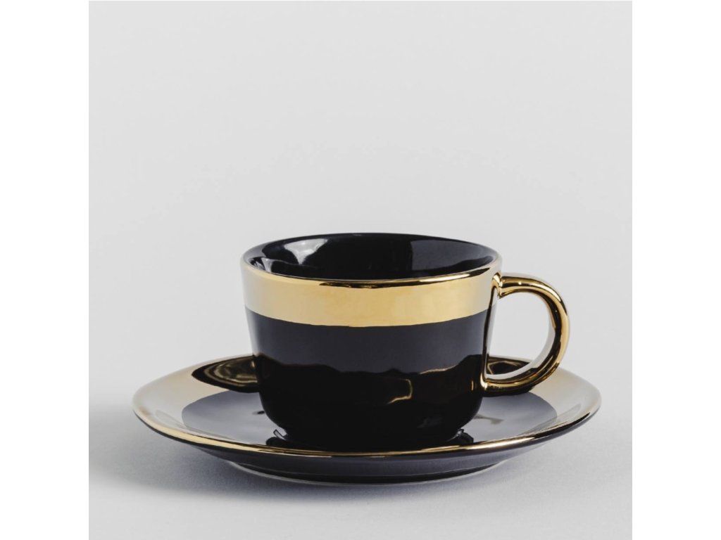 Čajová súprava z porcelánovej šálky s podšálkou vám spríjemní odpočinok. Štýlový dizajn, elegantná čierna a zlatá farba robia zo súpravy vynikajúcu voľbu pre súkromný čajový večierok.