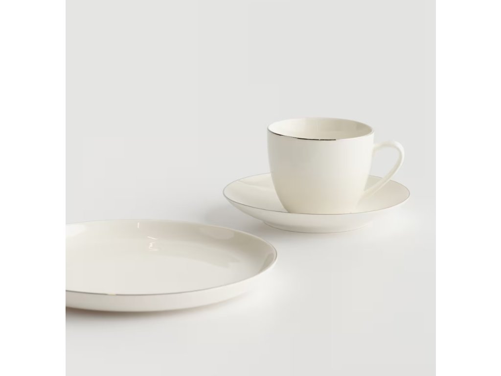 Klasickú farbu slonovinovej kosti súpravy dopĺňa subtílna strieborná línia, ktorá podčiarkuje starostlivý dizajn. Jemný lesk porcelánu kontrastuje s precíznym vyhotovením strieborných okrajov. Celok sa skvele hodí na rodinné raňajky, slávnostné večere a počas chvíľ len pre seba. Je ideálna pre priaznivcov klasického, minimalistického štýlu a elegantnej jednoduchosti.
