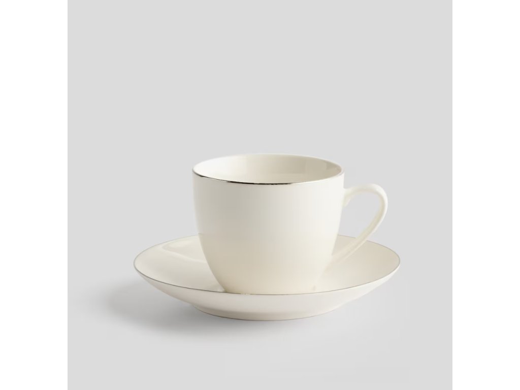 Už prvý dúšok kávy z porcelánovej šálky Plata s podšálkou premení každodenný rituál na oslavu. Jej krémový odtieň slonovinovej kosti a strieborná, lesklá línia na okrajoch evokujú spomienky na rodinné stretnutia pri stole, elegantné popoludňajšie čaje a tradície, ktoré sa oplatí pestovať každý deň. Táto súprava upokojuje zmysly ideálne vyhladeným povrchom a elegantným leskom. Jednoduchosť formy, prepojená strieborným akcentom, spôsobuje, že šálka sa skvele hodí do klasických, ako aj moderných aranžmánov stola. Je to voľba pre ľudí, ktorí si cenia prepracované detaily a nadčasovú krásu, vloženú do univerzálnej formy šálky s pohodlným uchom a zladenou podšálkou.
