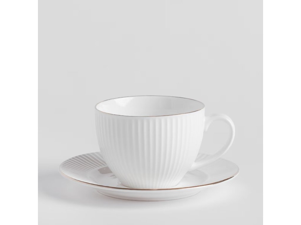Hlavným materiálom, z ktorého bola táto šálka s podšálkou vyrobená, je New Bone China – vysokokvalitný porcelán, ktorý zabezpečuje trvácnosť a odolnosť voči poškodeniu. Vďaka tomu bude tento produkt tešiť oko a slúžiť po mnoho rokov.