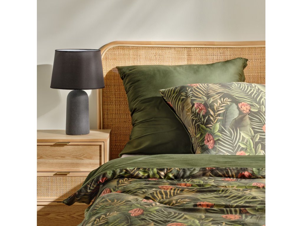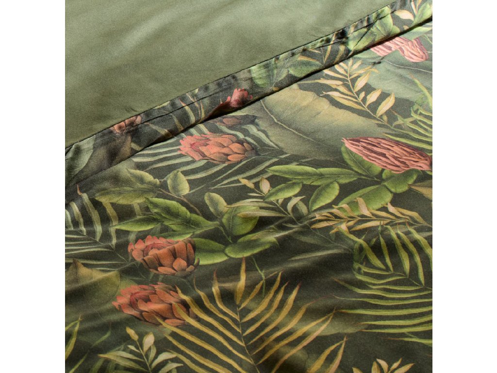 Obliečky zo saténovej bavlny v tmavozelenom odtieni s rastlinným motívom sú elegantnou a pohodlnou voľbou do vašej spálne. Ich mäkká, saténová tkanina zaisťuje príjemné používanie a jedinečný vzor vnesie do interiéru prirodzenú, pokojnú atmosféru. Sú ideálne na vytvorenie útulného a štýlového priestoru na odpočinok.