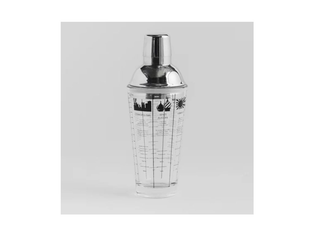 Šejker je vyrobený z odolného materiálu so zosilneným dnom. Jeho viečko má integrované sitko (strainer) z nehrdzavejúcej ocele.