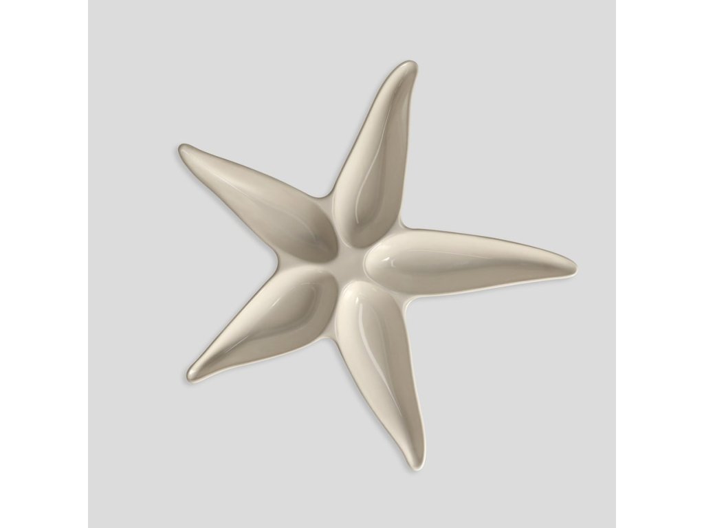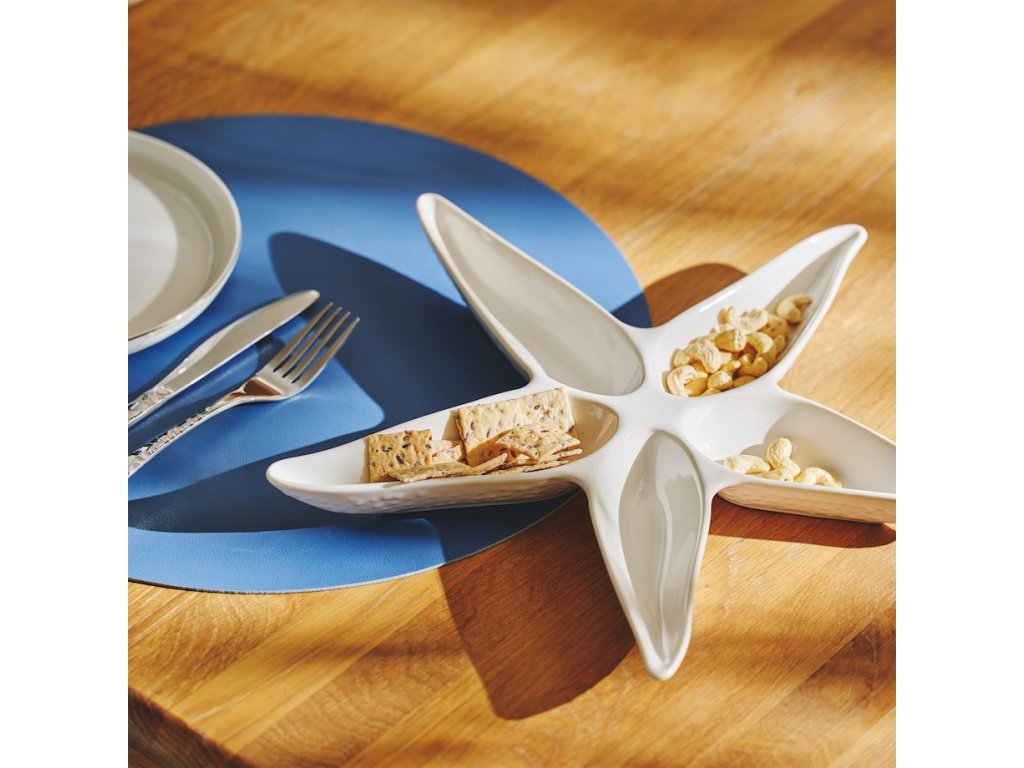 Porcelánový podnos v tvare hviezdice v bielej farbe je originálny a štýlový doplnok na servírovanie občerstvenia, ovocia alebo sladkostí. Jeho unikátny tvar priťahuje pozornosť a vnáša do interiéru nádych morskej elegancie.