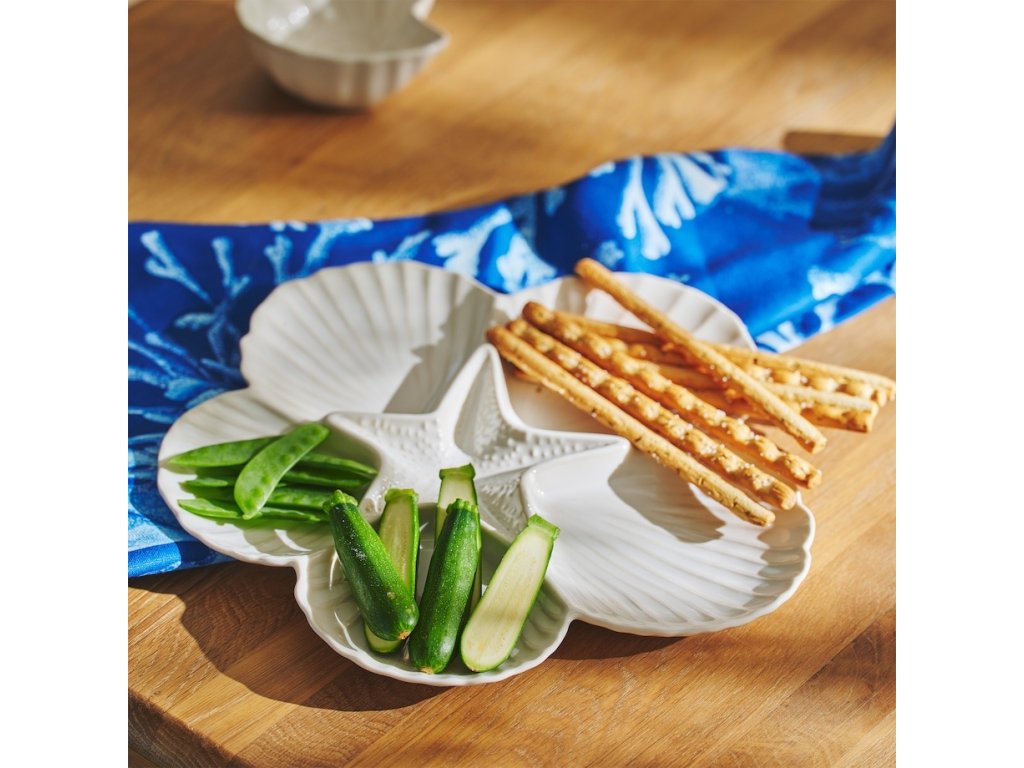 Porcelánový podnos v bielej farbe je elegantný prvok stolového riadu. Je ideálny na servírovanie ovocia, zeleniny a občerstvenia. Unikátny morský dizajn a hladké vyhotovenie zaručujú, že sa dokonale hodí ku každému stolovaniu.