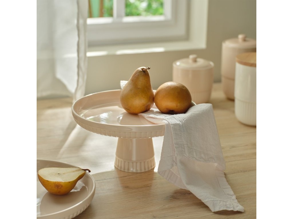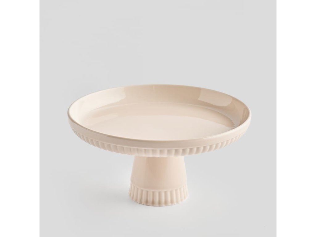 Porcelánová tácka na nôžke v ružovej farbe. Elegantná a štýlová, ideálna na servírovanie koláčov, dezertov alebo ovocia, dodá šarm každému prestieraniu. Subtílny dizajn na nôžke podčiarkuje jej rafinovaný charakter.