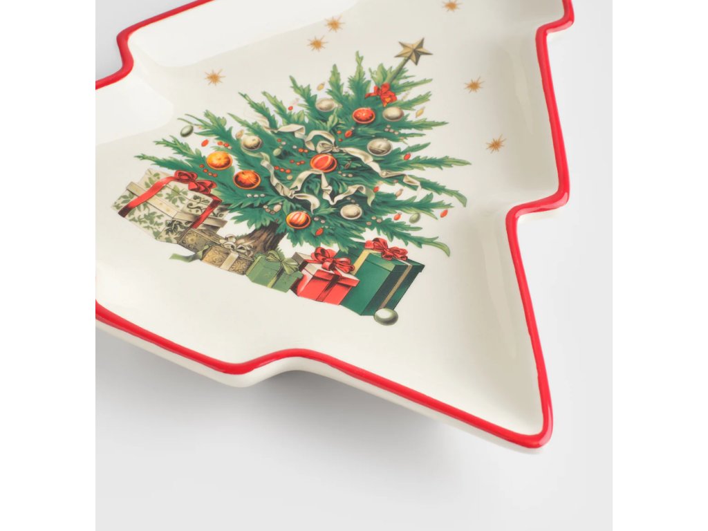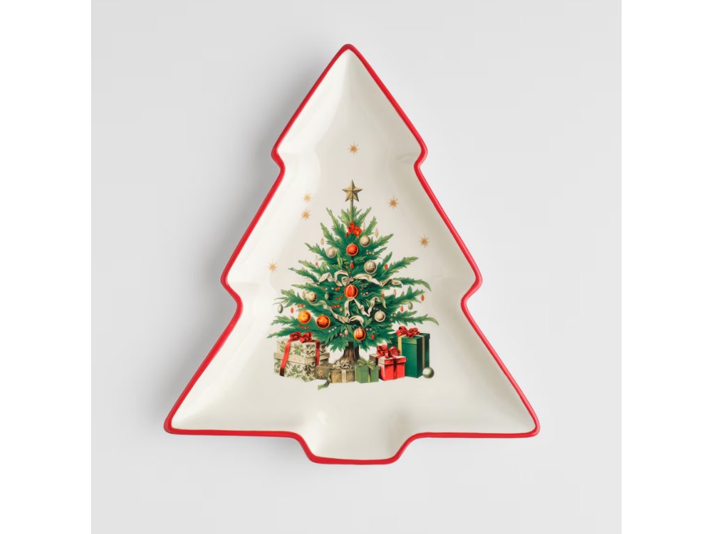 Vneste na svoj sviatočný stôl radosť a tradíciu s ručne dekorovaným servírovacím podnosom Villagot v tvare vianočného stromčeka. Tento viacfarebný podnos, vyrobený z odolného dolomitu, je zdobený klasickým motívom vianočného stromčeka s darčekmi, čo okamžite vytvorí teplú, sviatočnú atmosféru pri podávaní zákuskov či občerstvenia.