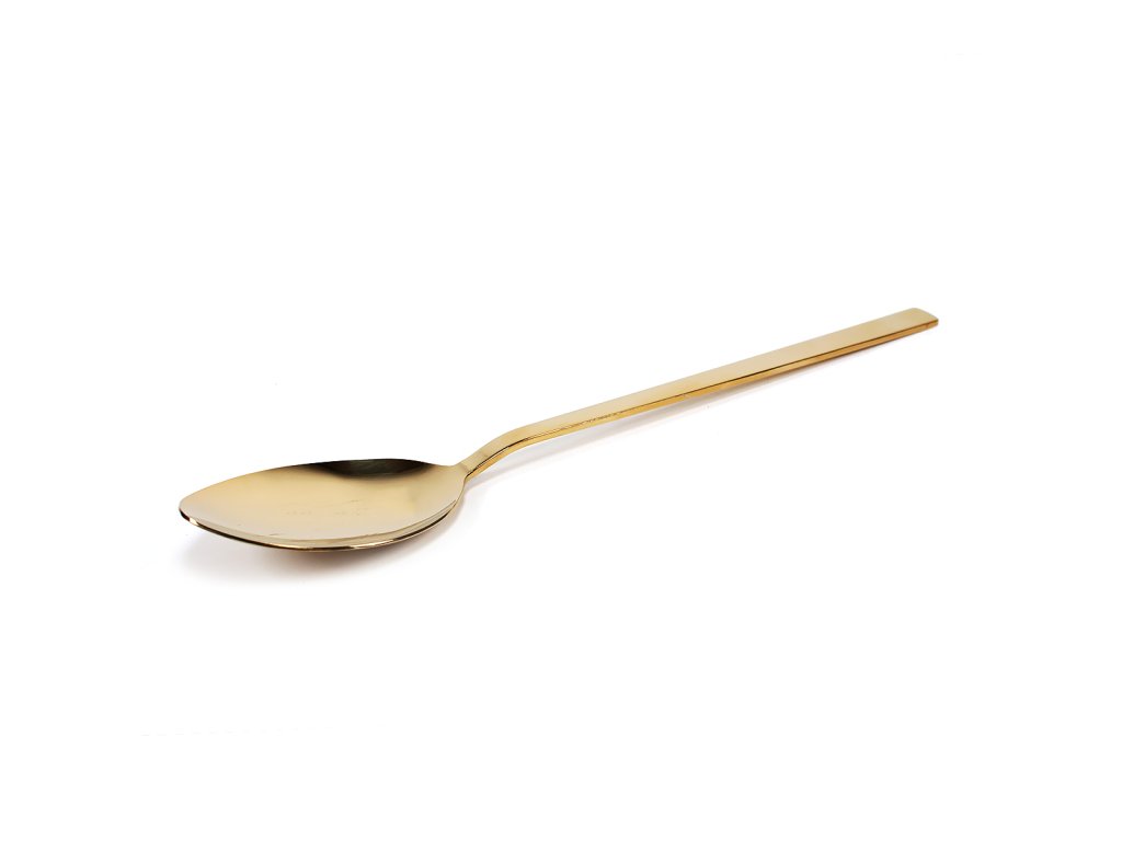 S rozmermi 28,5 x 5,7 cm je ideálna na servírovanie rôznych pokrmov – od príloh a šalátov až po hlavné jedlá. Vyrobená z kvalitného kovu v oslnivej zlatej farbe, ktorá dodá vášmu stolovaniu punc luxusu a sofistikovanosti. Jej elegantný dizajn a optimálna veľkosť zabezpečujú pohodlné a štýlové servírovanie. Táto lyžica je nielen praktickým pomocníkom do každej kuchyne, ale aj krásnym doplnkom, ktorý zaujme na každom stole a podčiarkne slávnostnú atmosféru.